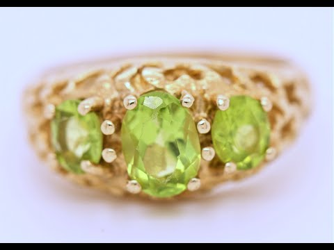 BJC® 9ct Yellow Gold Peridot 1.00ct Trilogy Vintage Style Size N Ring R148