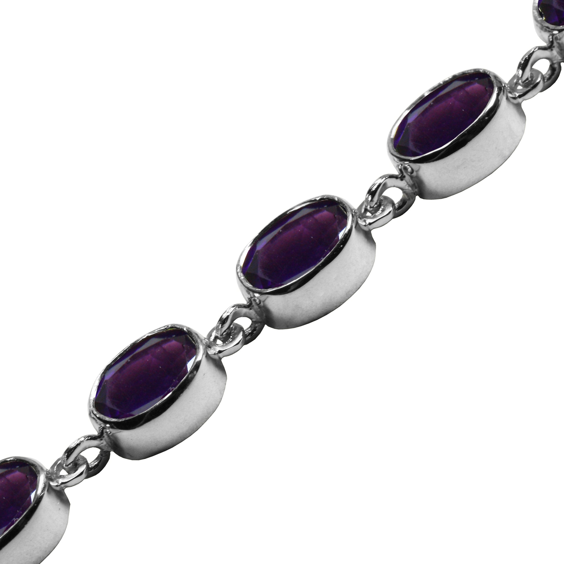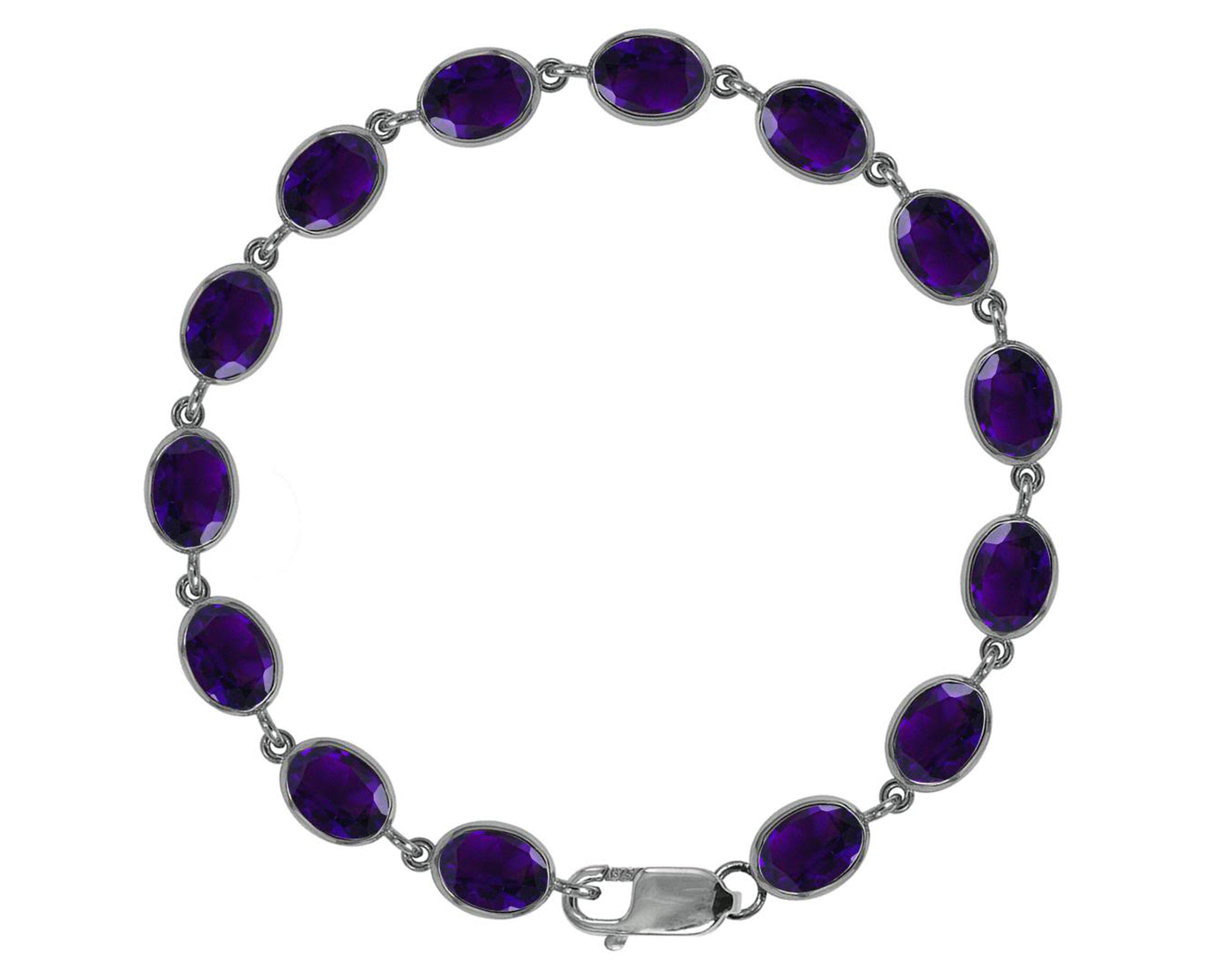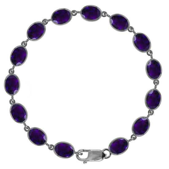 BJC® 925 Sterling Silver Natural Amethyst 21.00ct Oval Gemstone Tennis Bracelet