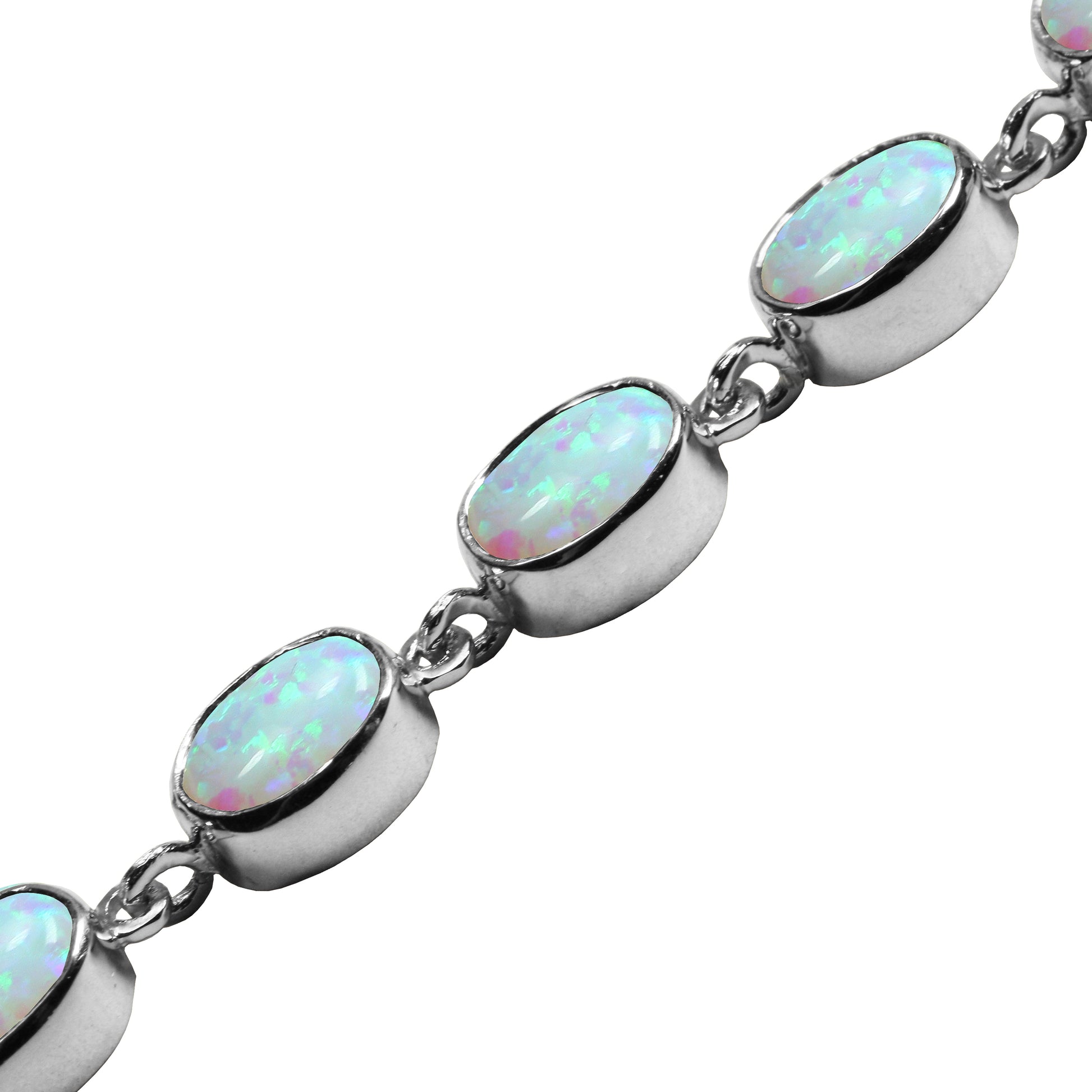 BJC® 925 Sterling Silver Stunning Opal 21.00ct Oval Gemstone Tennis Bracelet 7.5"