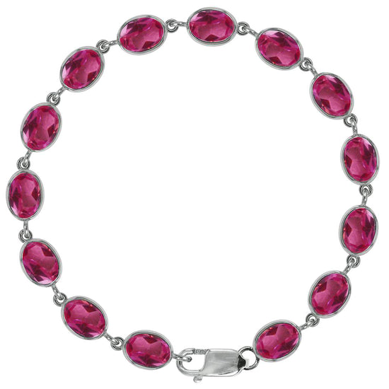 BJC® 925 Sterling Silver Natural Pink Topaz 21.00ct Gemstone Tennis Bracelet