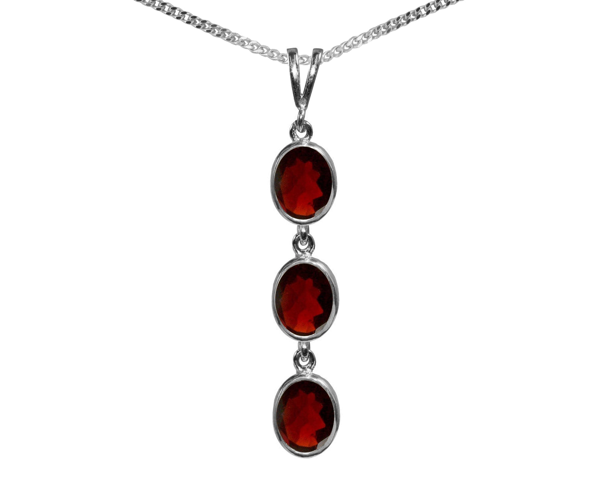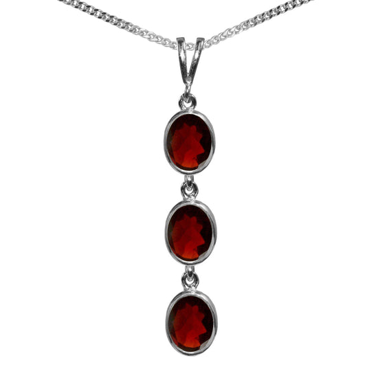 BJC® Sterling Silver 925 Natural Garnet Triple Drop Oval Pendant & Necklace