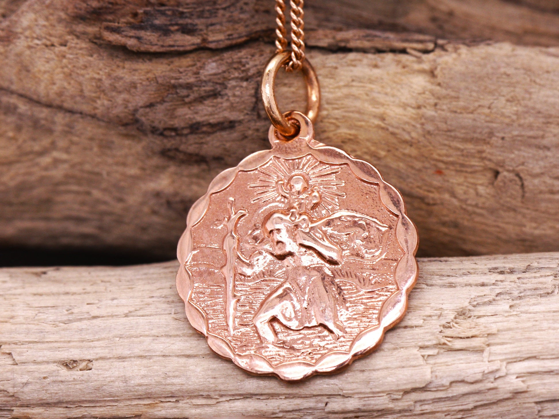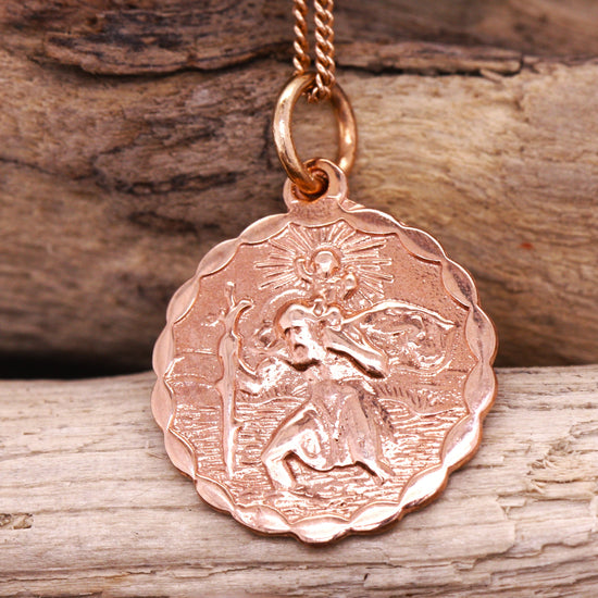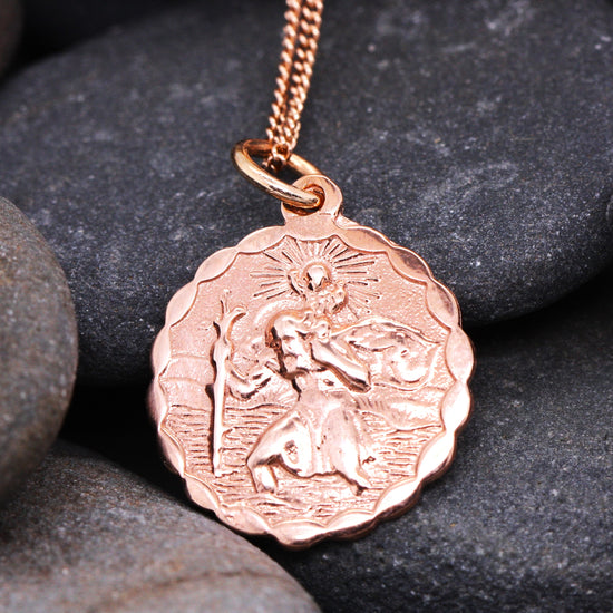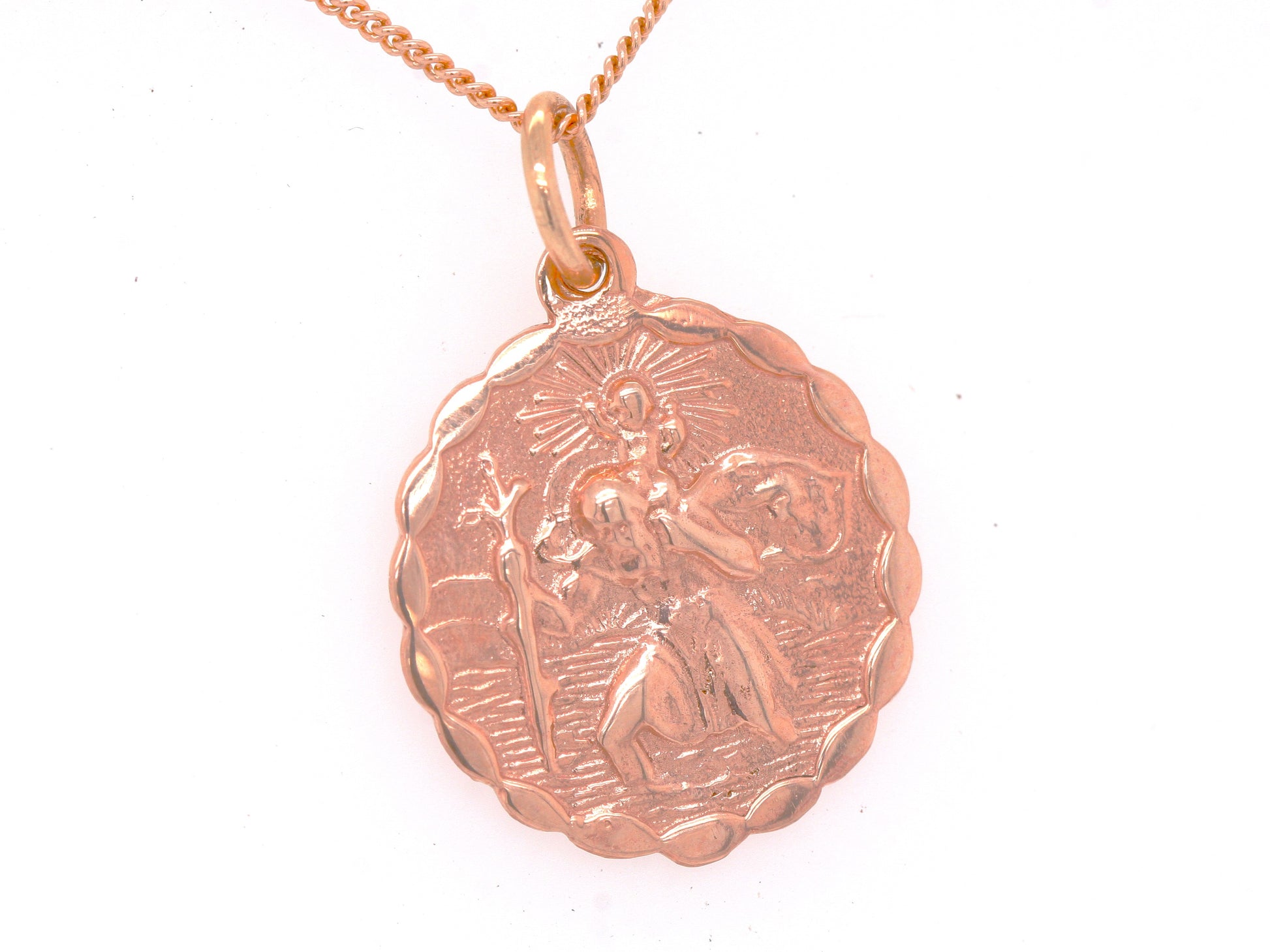 BJC® 9ct Rose Gold St Saint Christopher Pendant / Medallion Travel Necklace