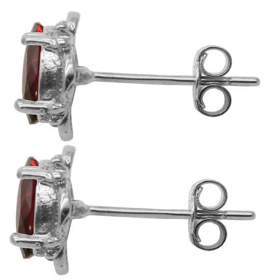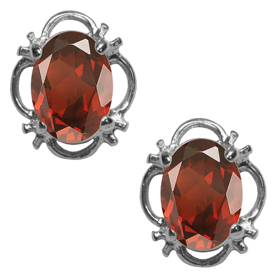 Beautiful 925 Sterling Silver Garnet Oval Stud Earrings.