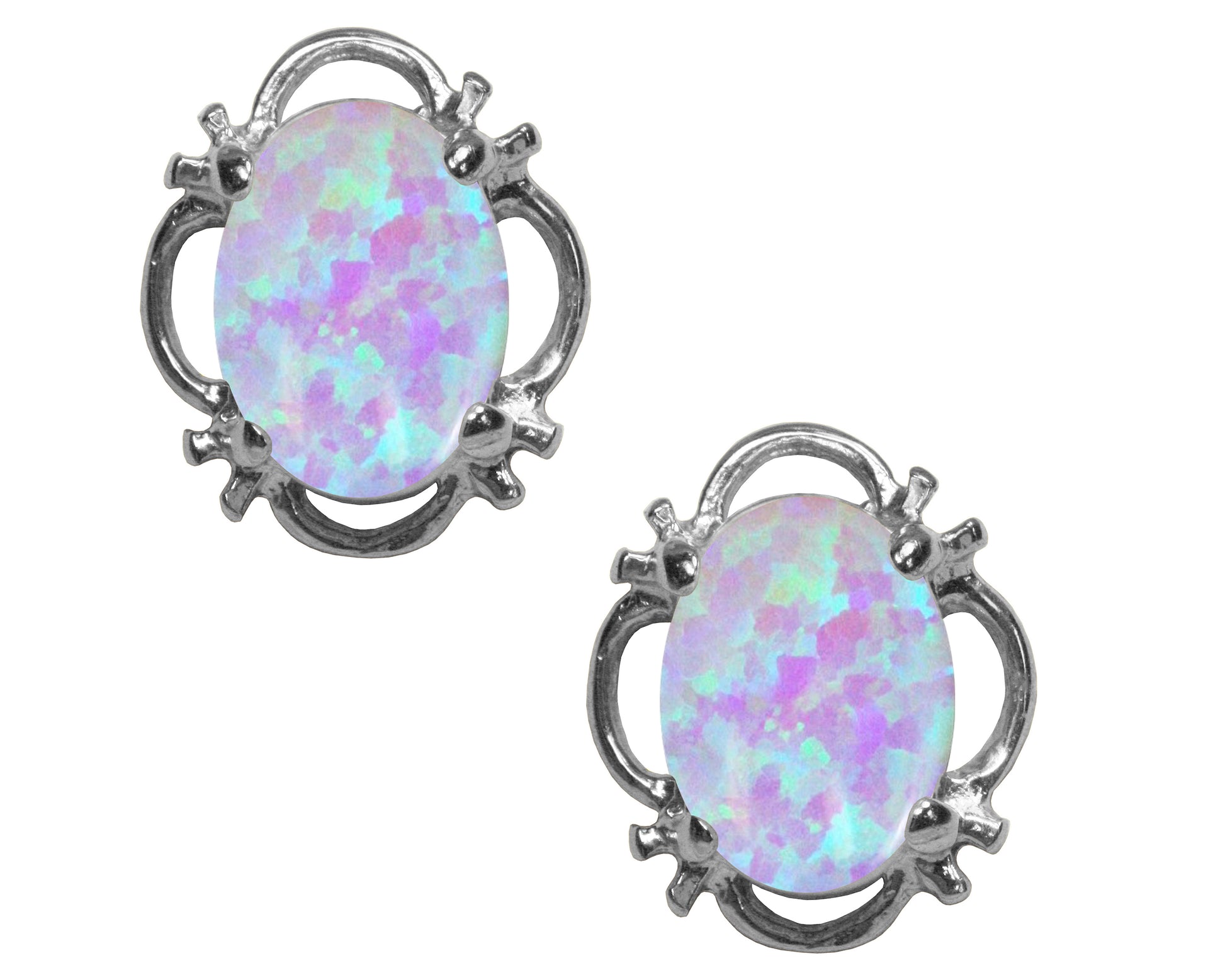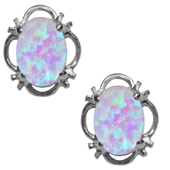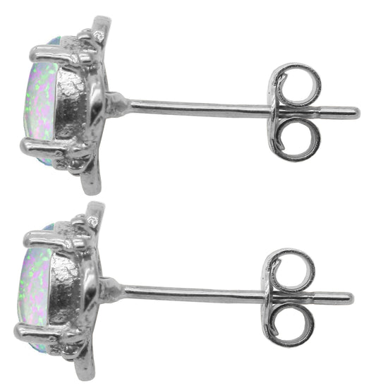 Beautiful 925 Sterling Silver Opal Oval Stud Earrings.