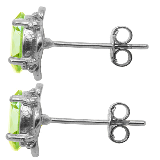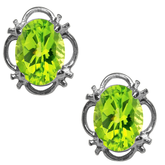 Beautiful 925 Sterling Silver Peridot Oval Stud Earrings.