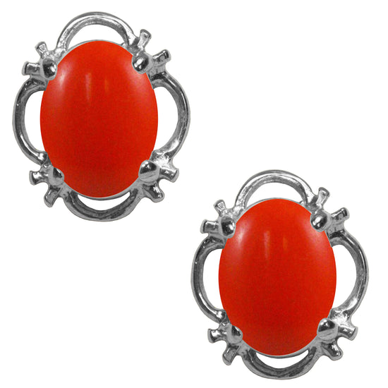Beautiful 925 Sterling Silver peach Coral Oval Stud Earrings.