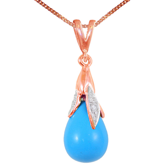 BJC® 9ct Rose Gold Turquoise & Diamond Briolette Drop Pendant / Necklace