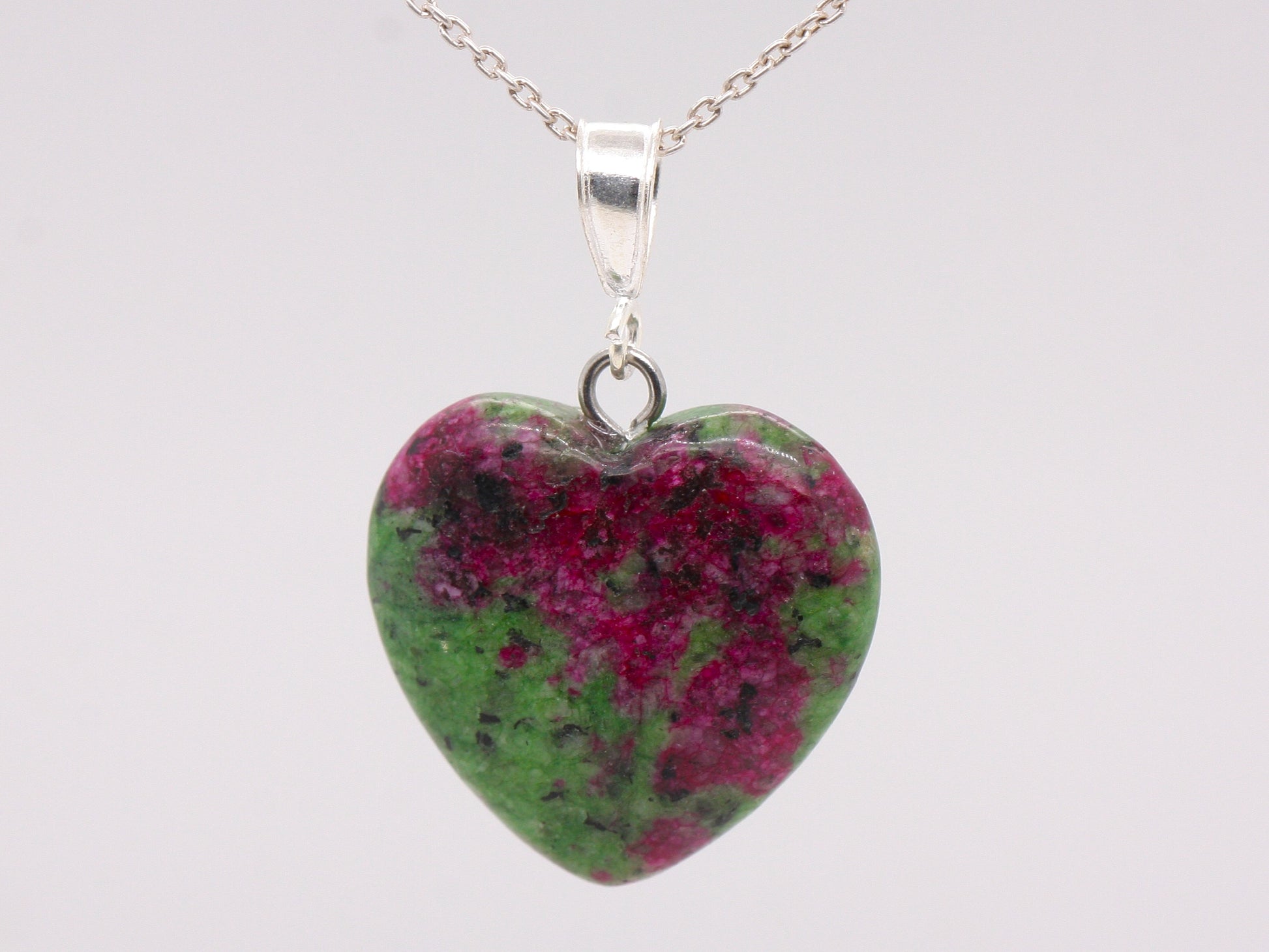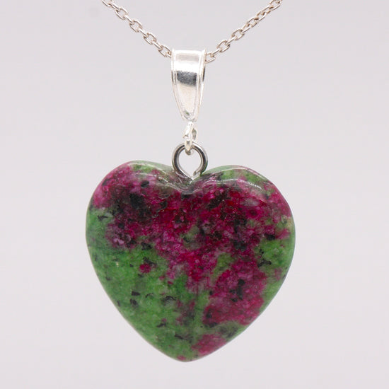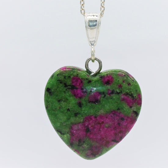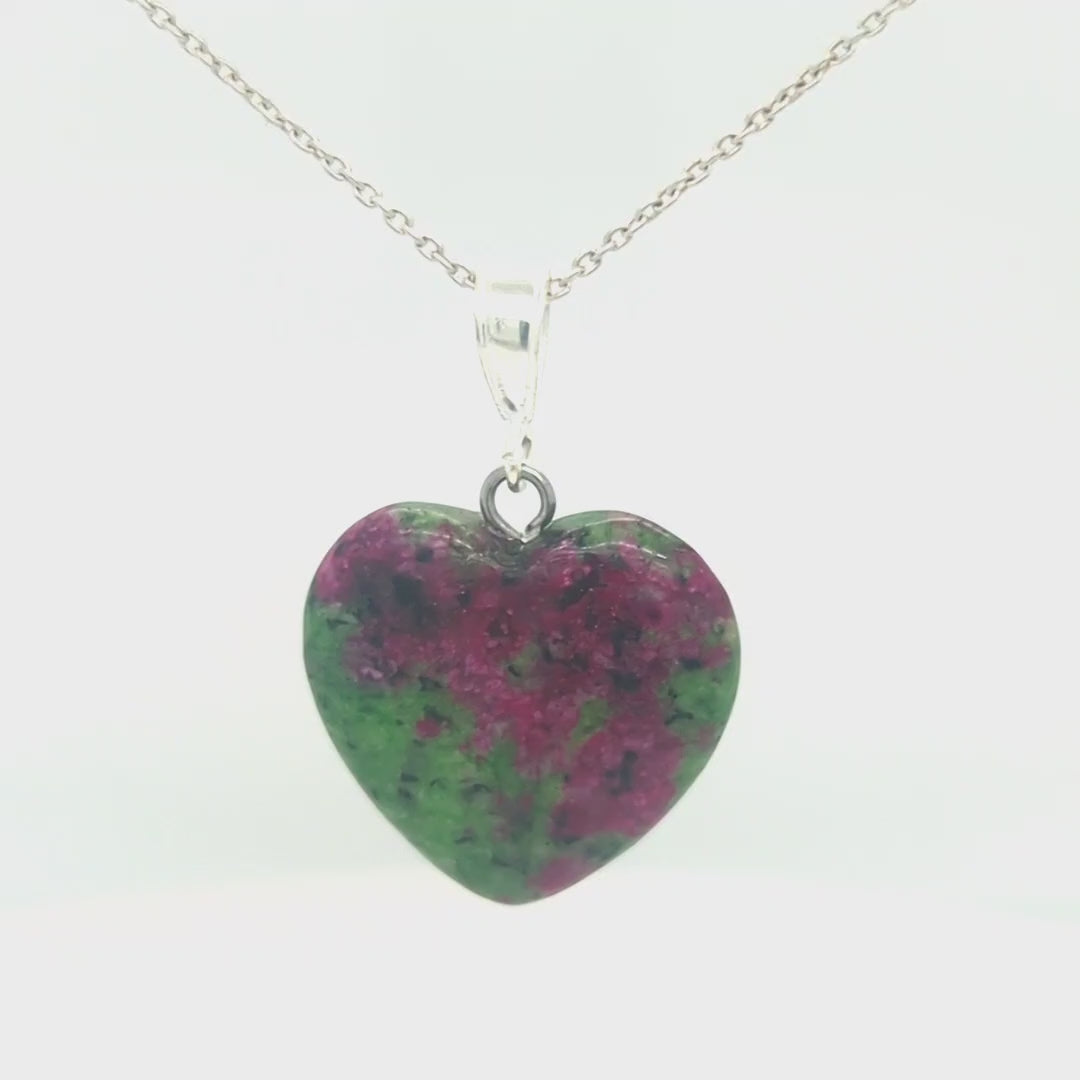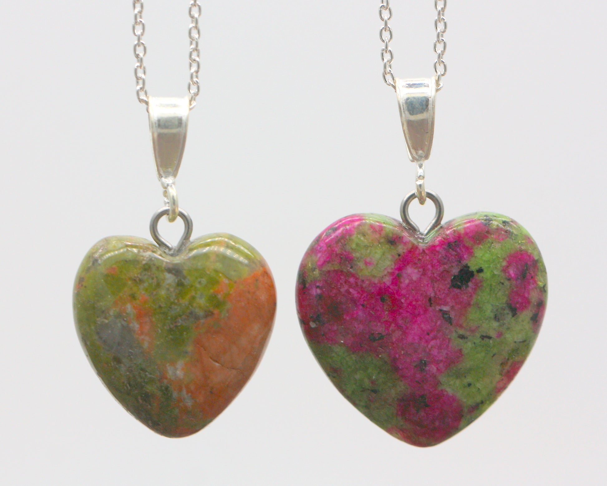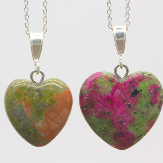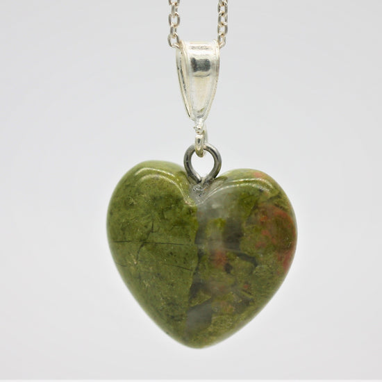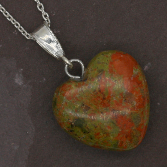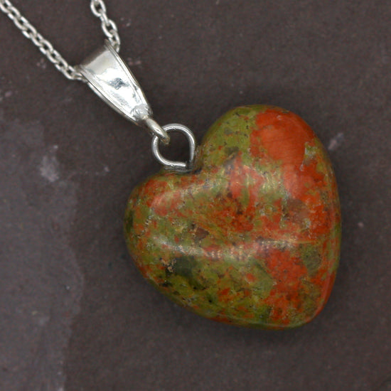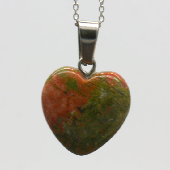 Sterling Silver Natural Unakite Jasper 16mm Love Heart Pendant & Necklace
