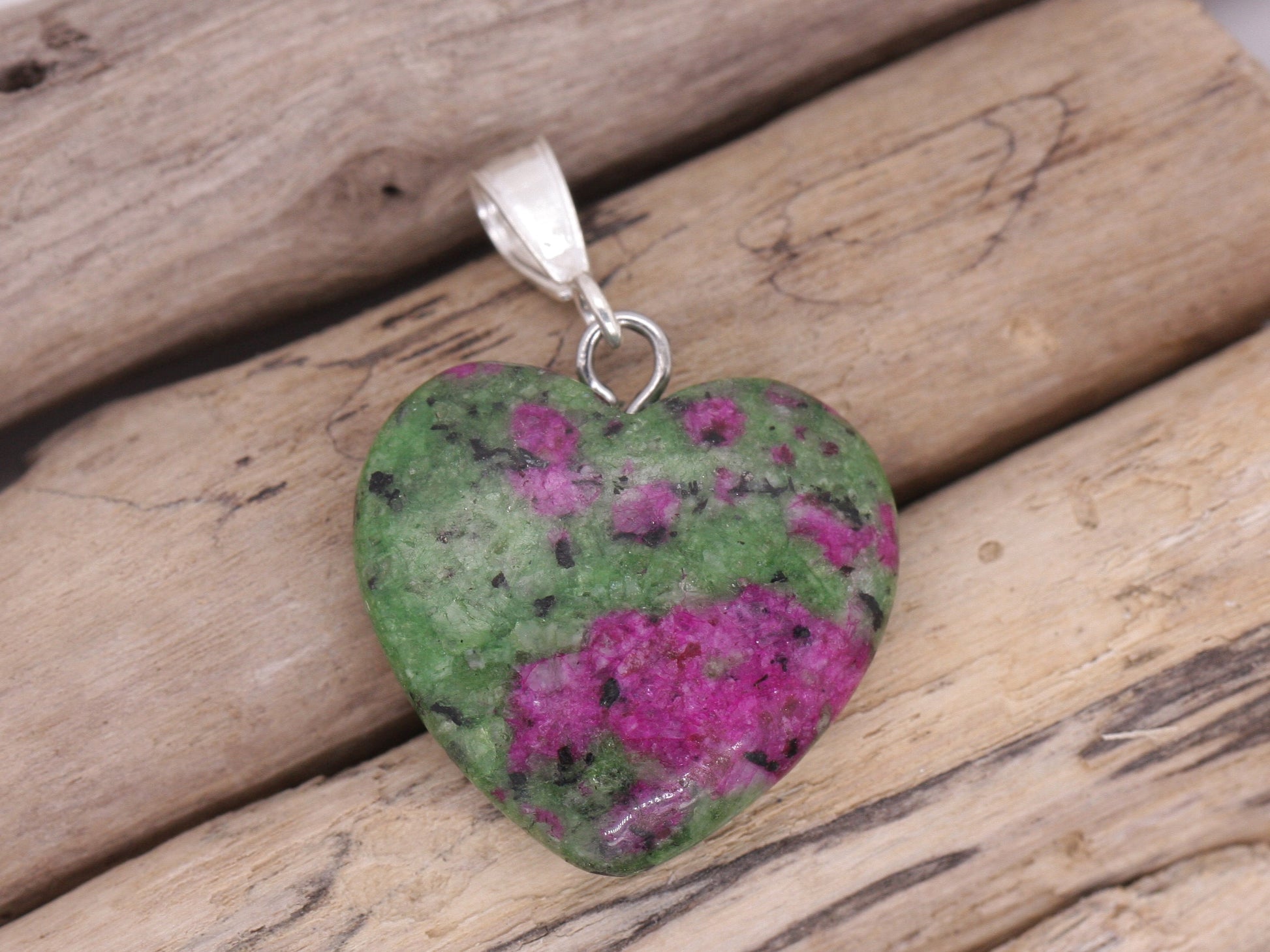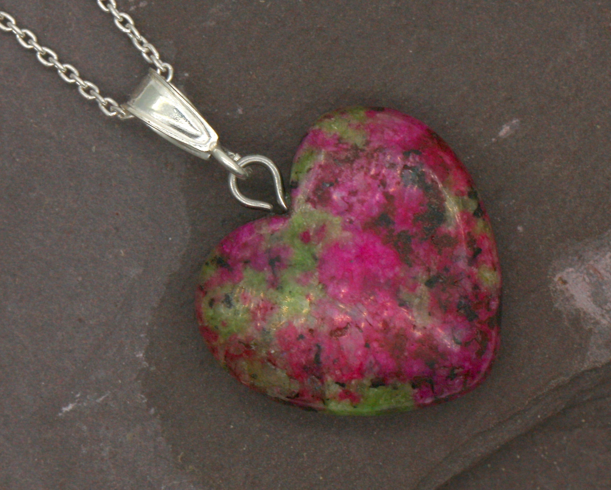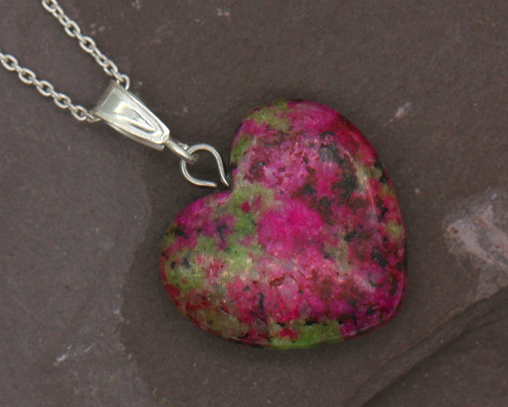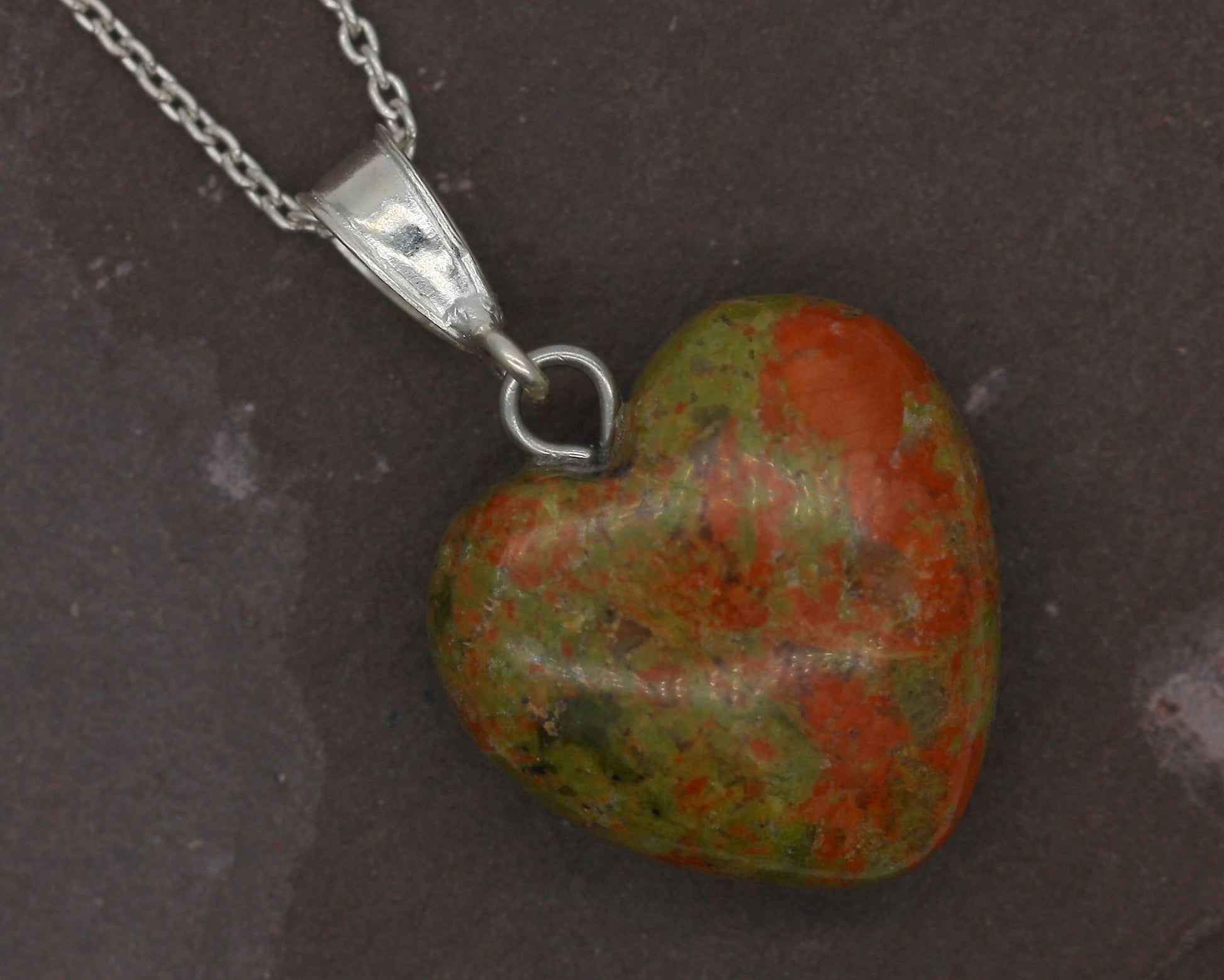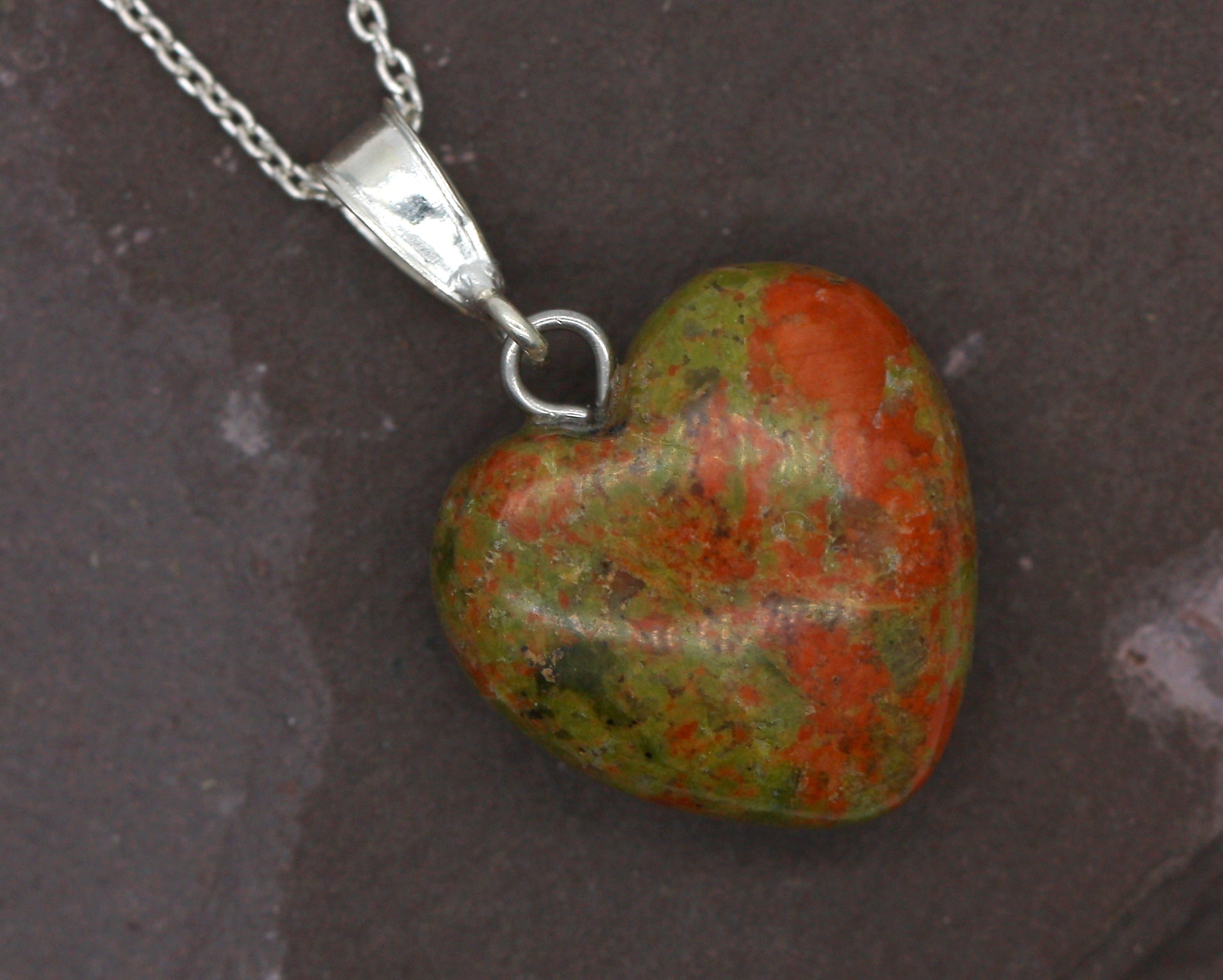 Featuring a Natural heart cut Unakite Jasper.