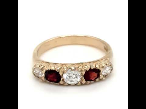 BJC® 9ct Yellow Gold Almandine Garnet & Cubic Zirconia Gypsy Ring Size M R121