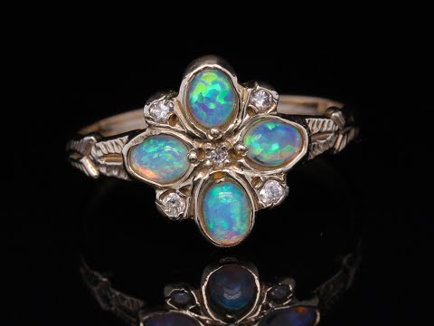 BJC® 9ct Yellow Gold Oval Cut Opal & Diamond Size N Cluster Ring R189