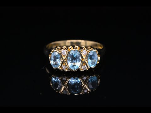 9ct Yellow Gold Blue Topaz & Diamond Gypsy Ring Size L British Made