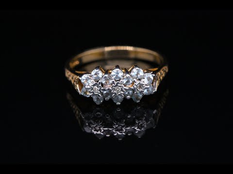 9ct Yellow Gold Blue Topaz & Diamond Cluster Triple Flower Ring Size N British Made