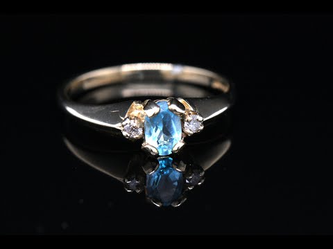 9ct Yellow Gold Blue Topaz & Diamond Trilogy Ring Size N British Made