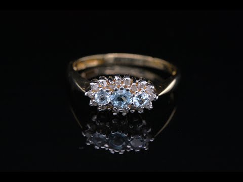9ct Yellow Gold Blue Topaz & Diamond Cluster Ring Size P British Made