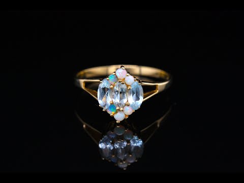 9ct Yellow Gold Natural Blue Topaz & Opal Cluster Ring Size O British Made