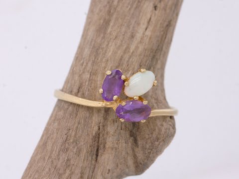 BJC® 9ct Yellow Gold Opal & Amethyst 3 Stone Size O Ring R240