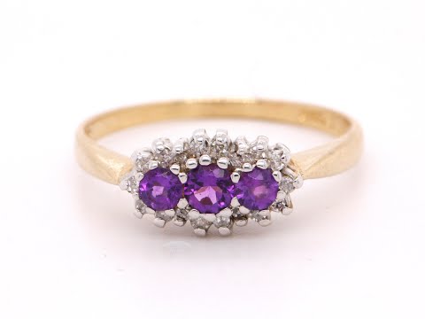 BJC® 9ct Yellow Gold Amethyst & Diamond Triple Cluster Ring R246