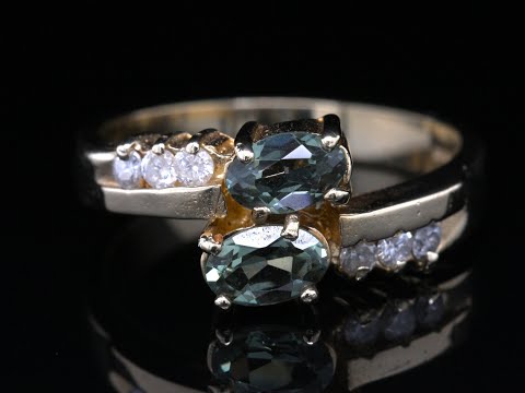 BJC® 9ct Yellow Gold Green Amethyst & Diamond Accented Twin Solitaire Ring R267