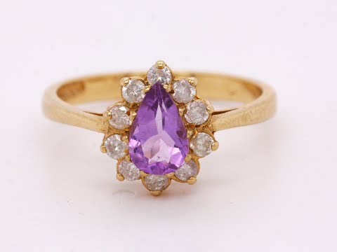 9ct Yellow Gold Natural Amethyst & Diamond Pear Cluster Dress Ring British Made