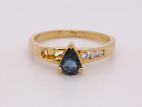 BJC® 18ct Yellow Gold Sapphire & Diamond Pear Size M Engagement Dress Ring R277