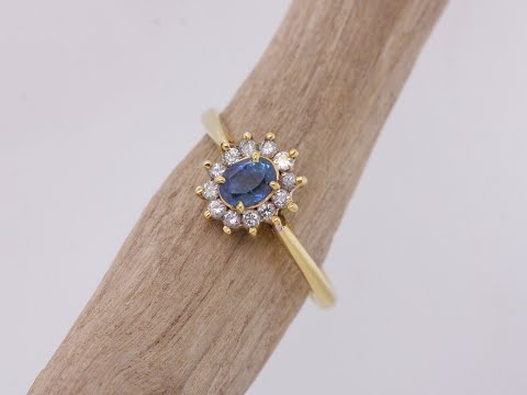 BJC® 18ct Yellow Gold Sapphire & Diamond Cluster Size M Engagement Ring R50