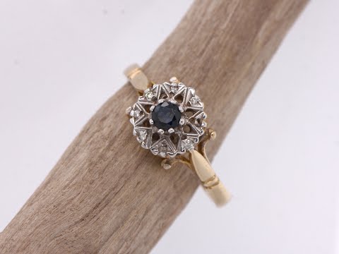 BJC® 9ct Yellow Gold Sapphire & Diamond Cluster Size O Engagement Ring R55