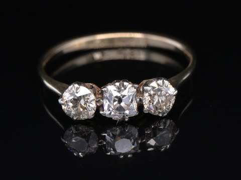Antique 18ct Yellow Gold Diamond 1.00ct Trilogy Size M Engagement Ring British
