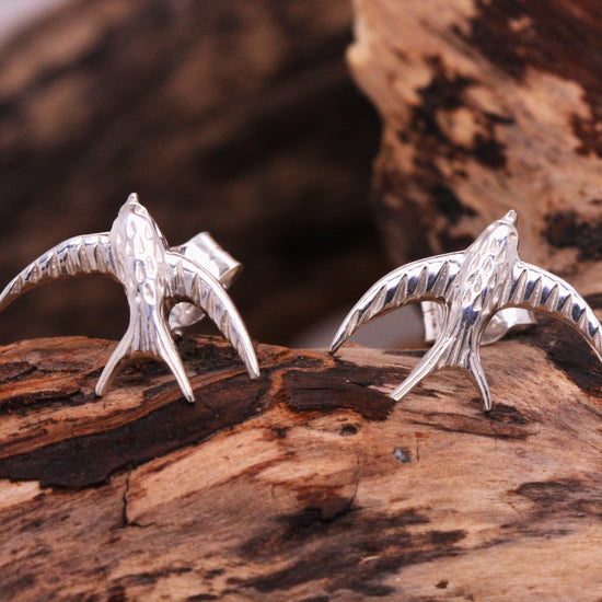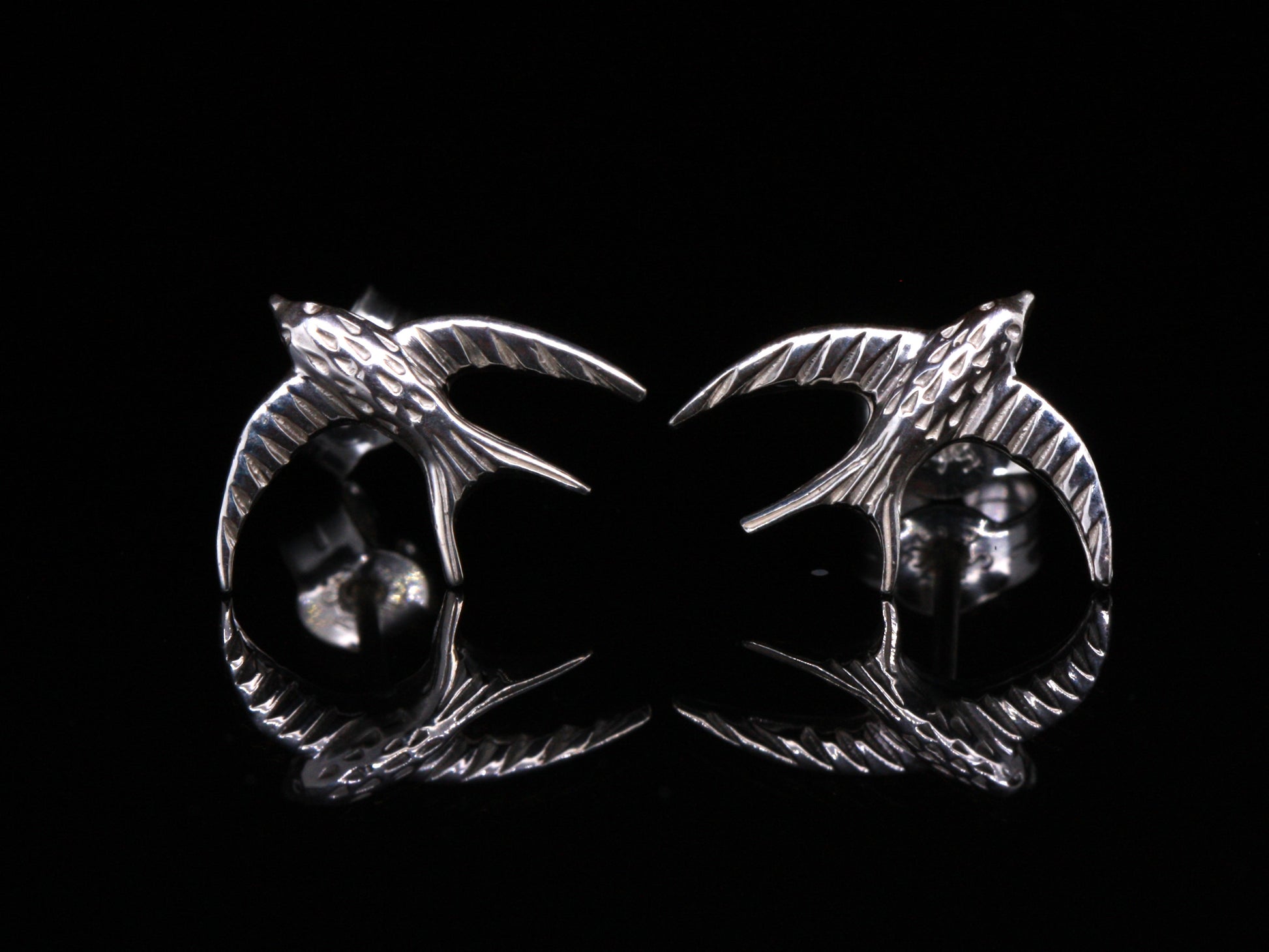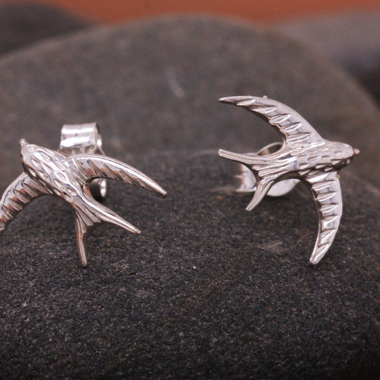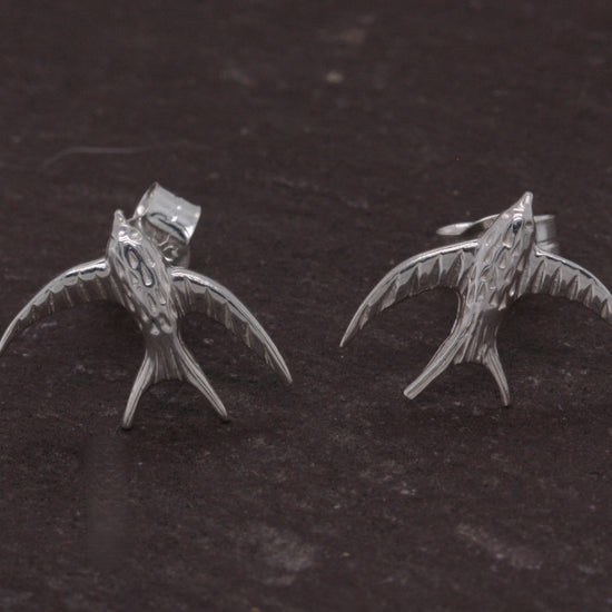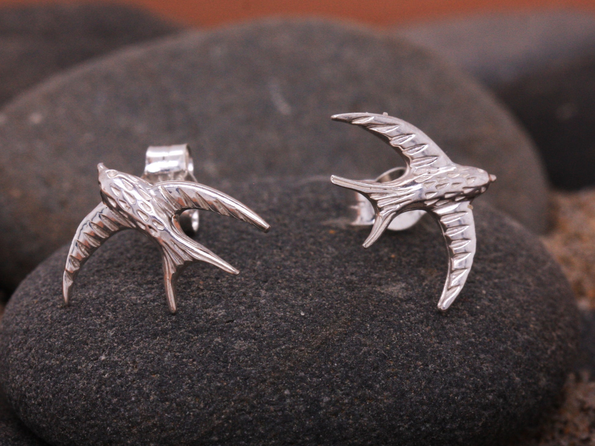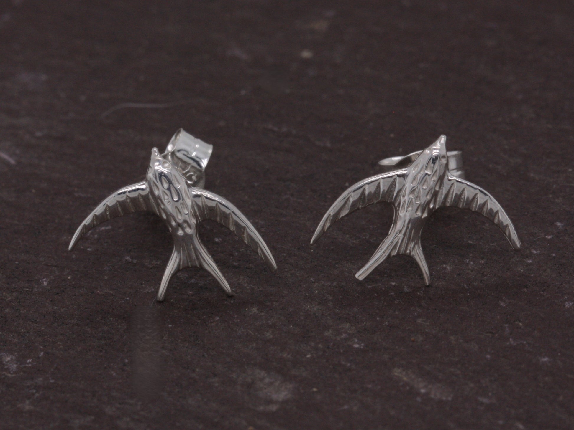 Sterling Silver Swallow Bird Stud Studs Earrings British Made Jewellery