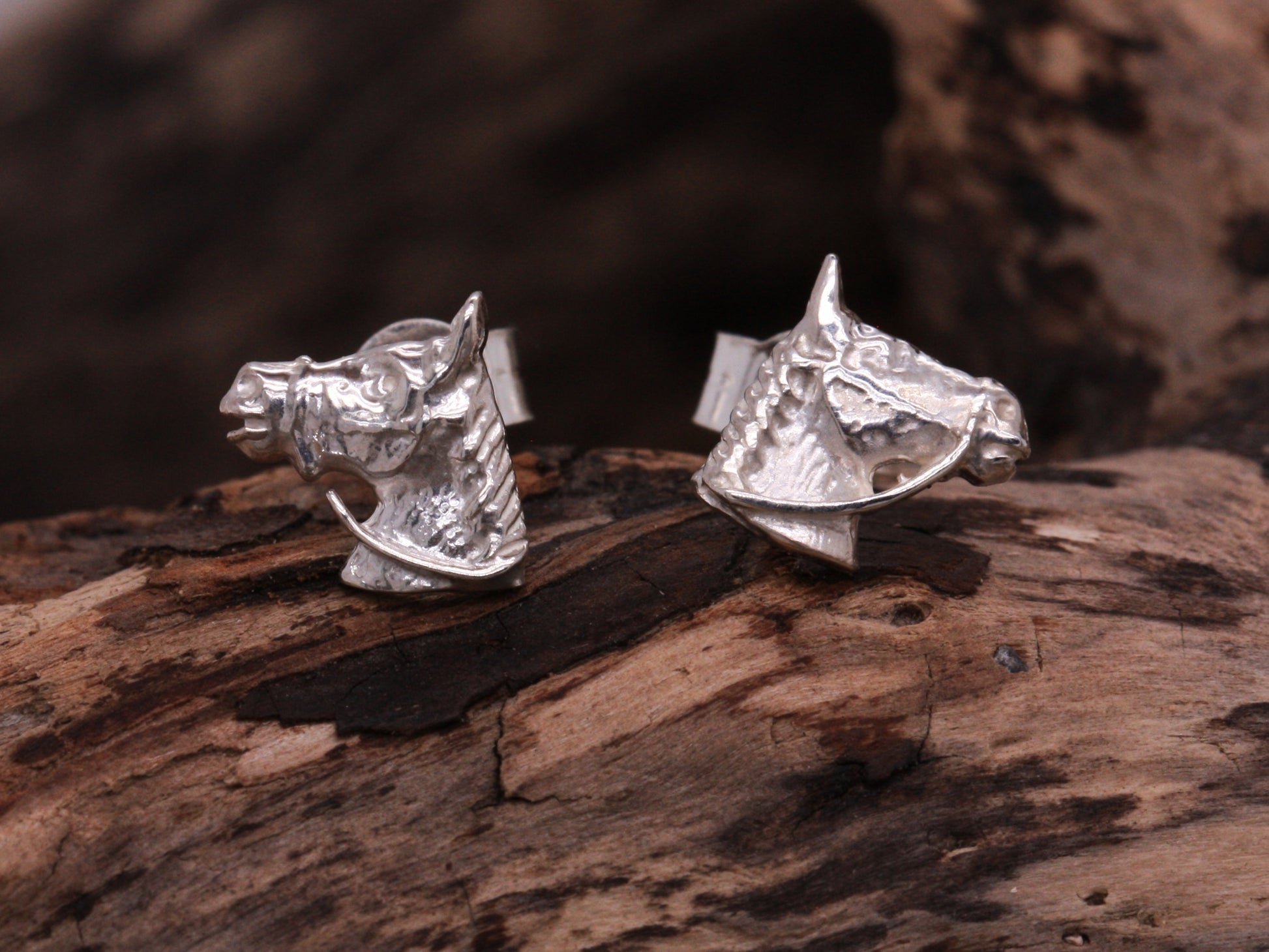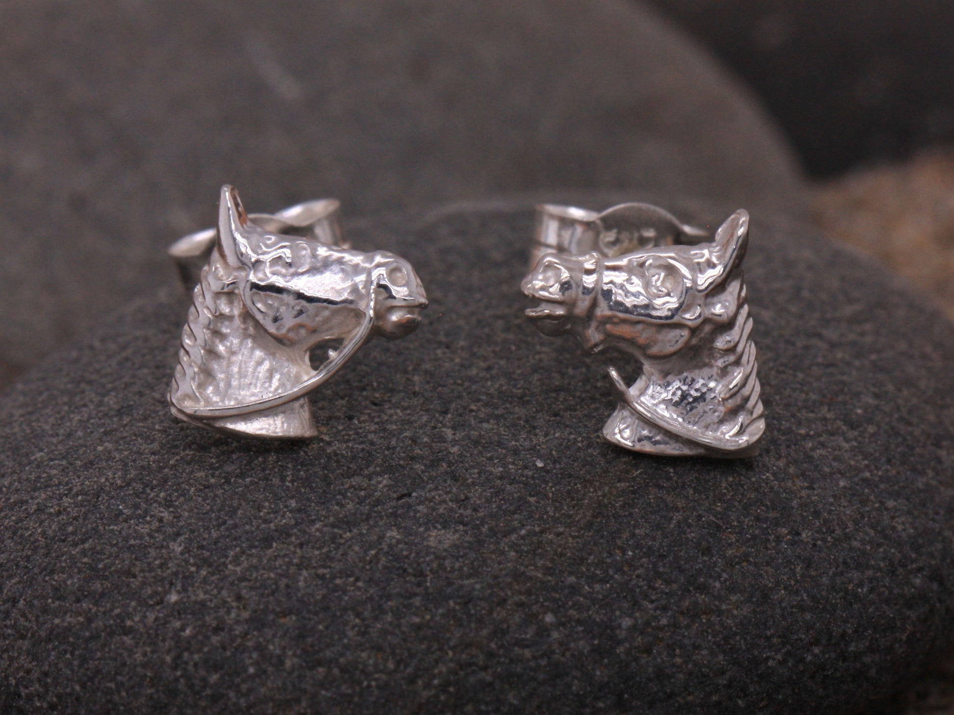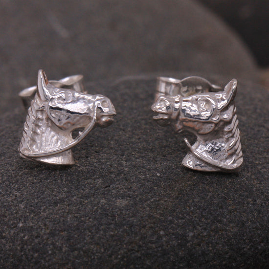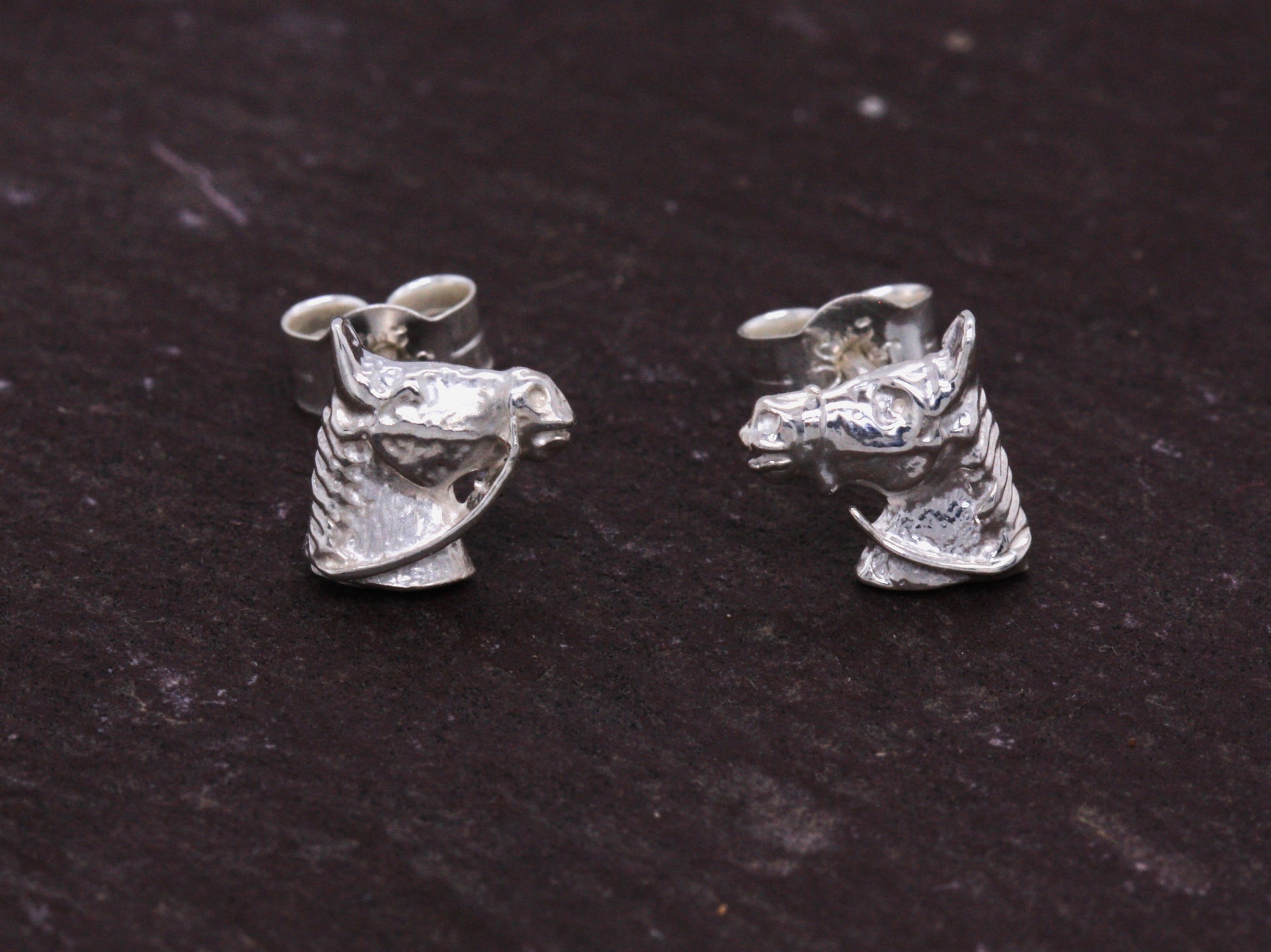 Sterling Silver Pony Horse Head Riding Bridle Stud Studs Earrings British Made Jewellery