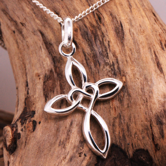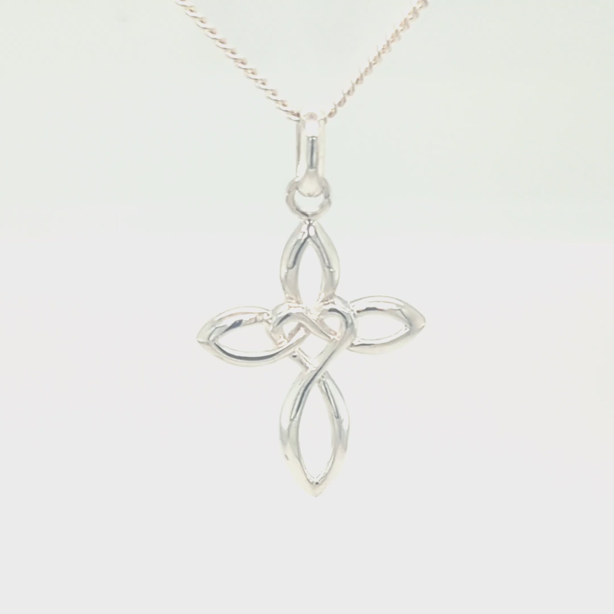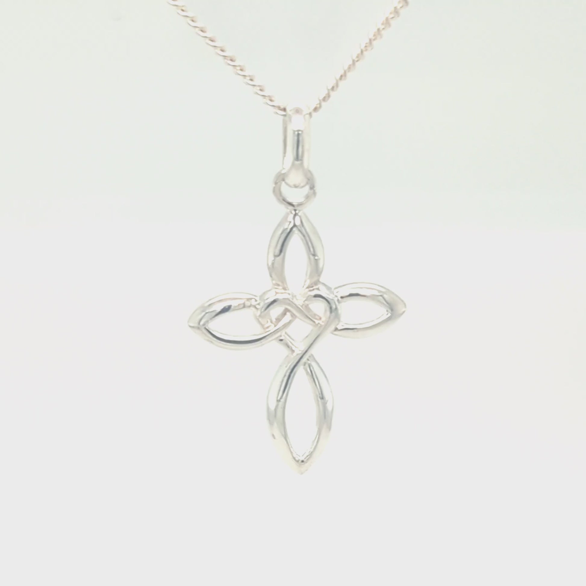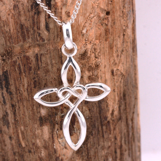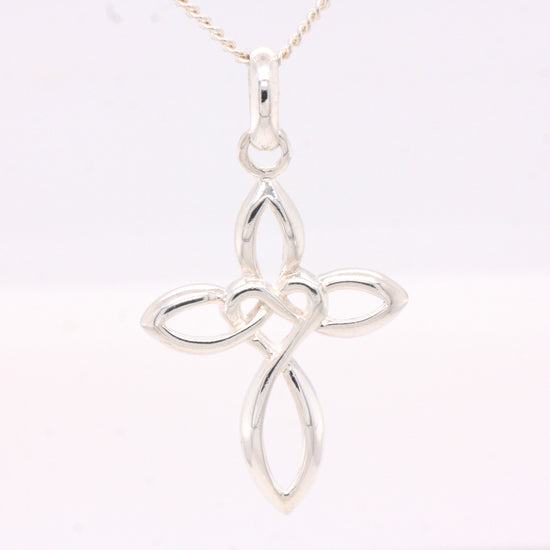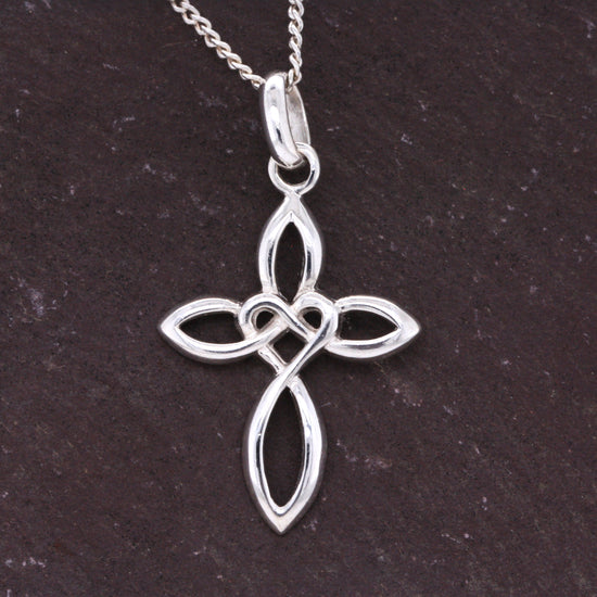 Solid Sterling Silver Celtic Style Love Cross Pendant & Sterling Silver Trace Necklace