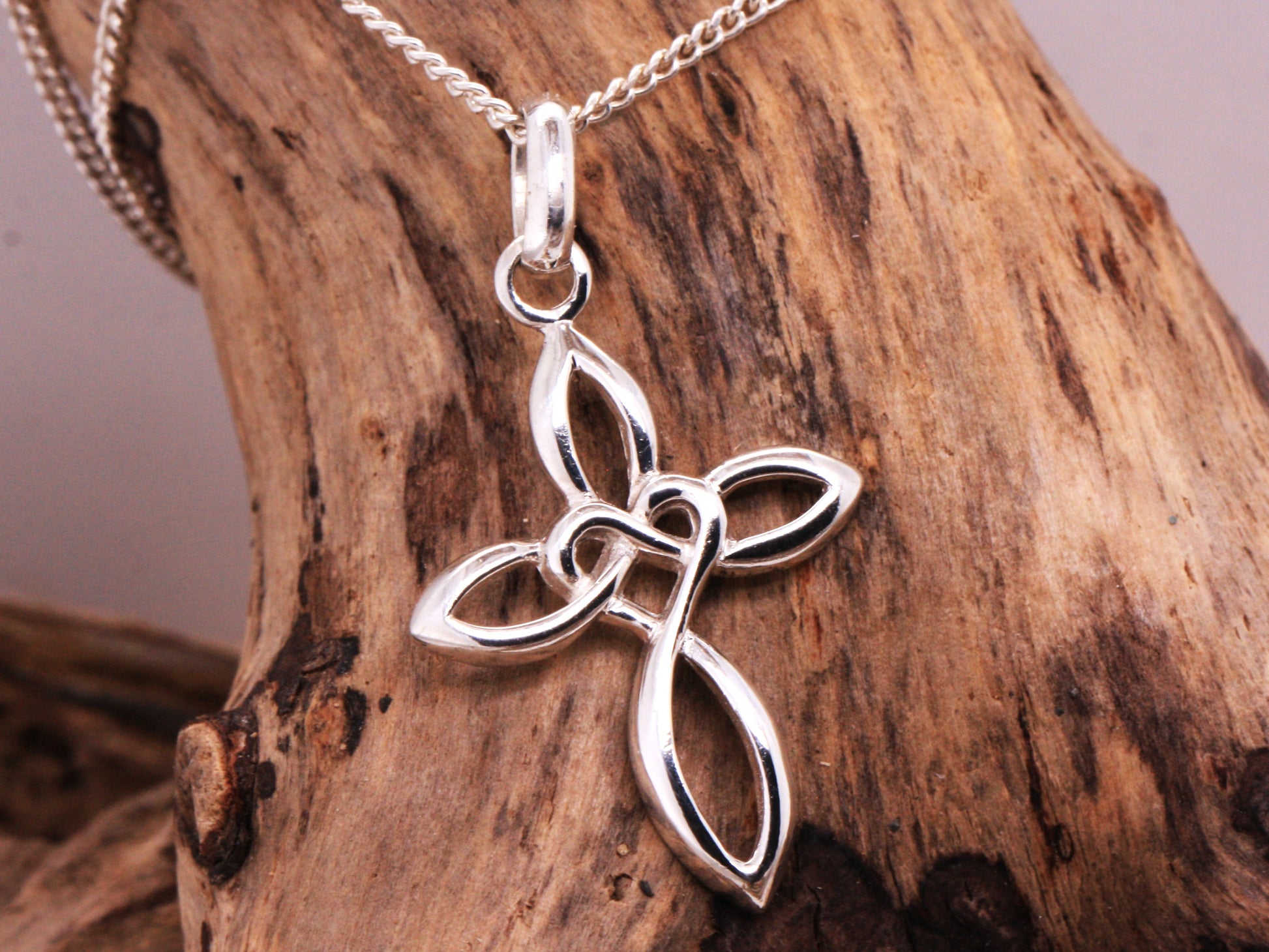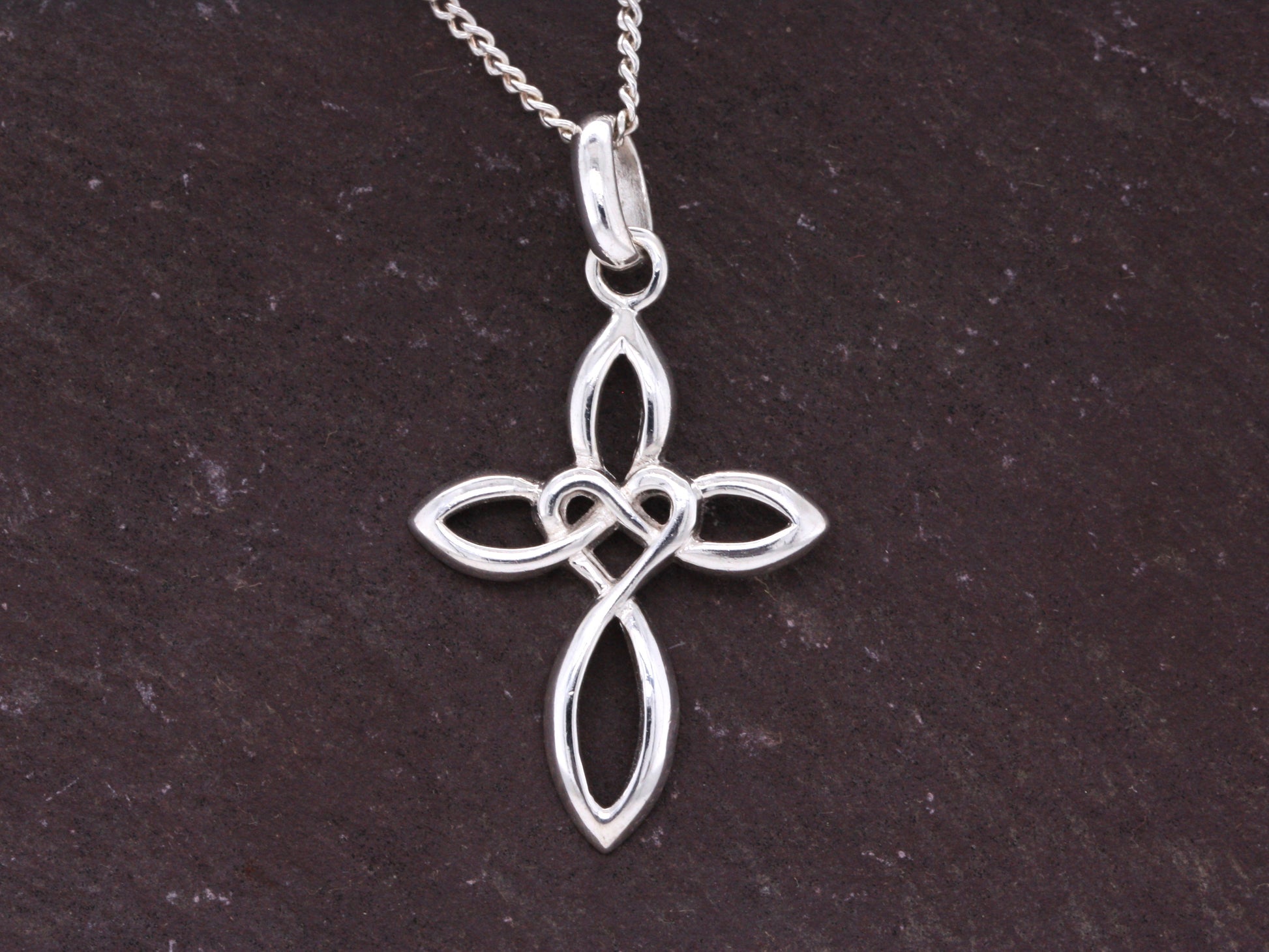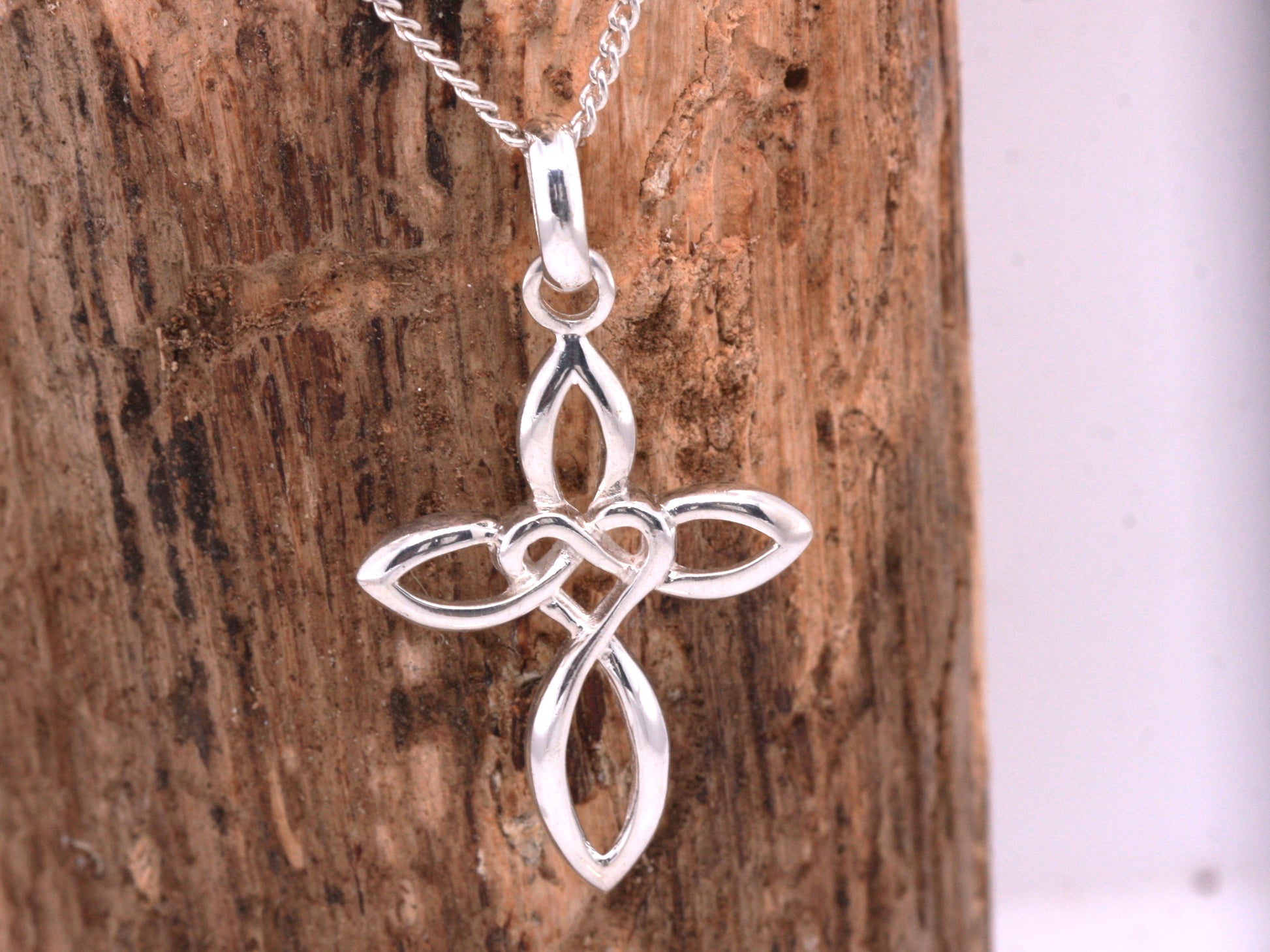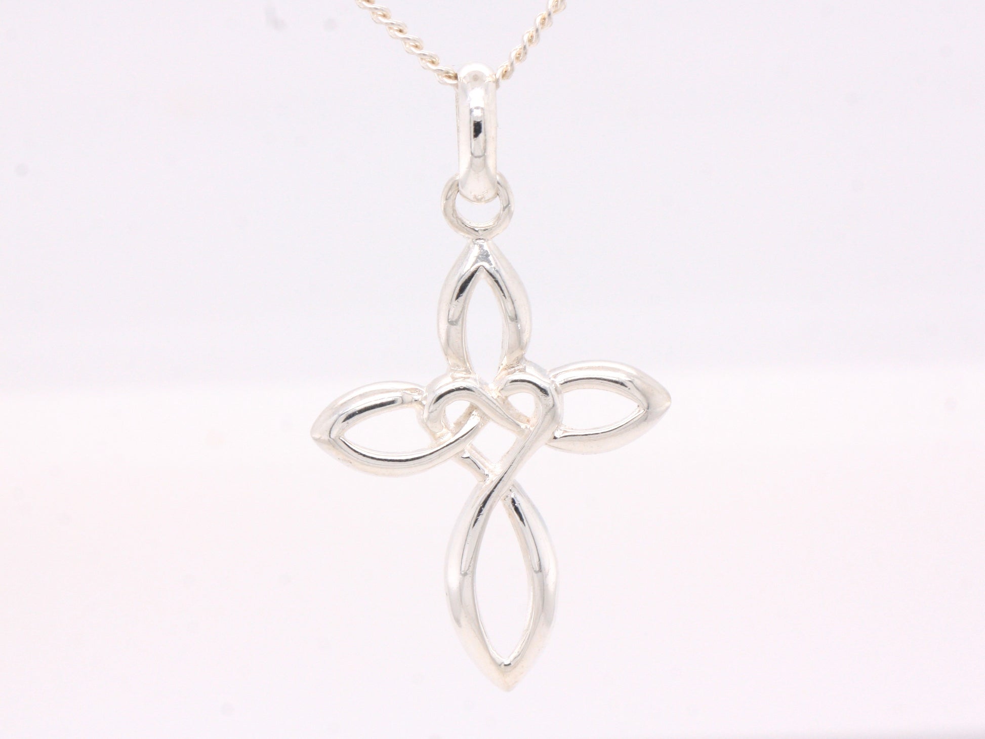 Solid Sterling Silver Celtic Style Love Cross Pendant & Sterling Silver Trace Necklace