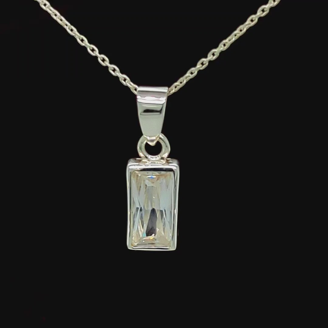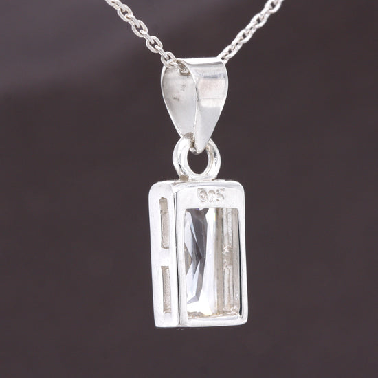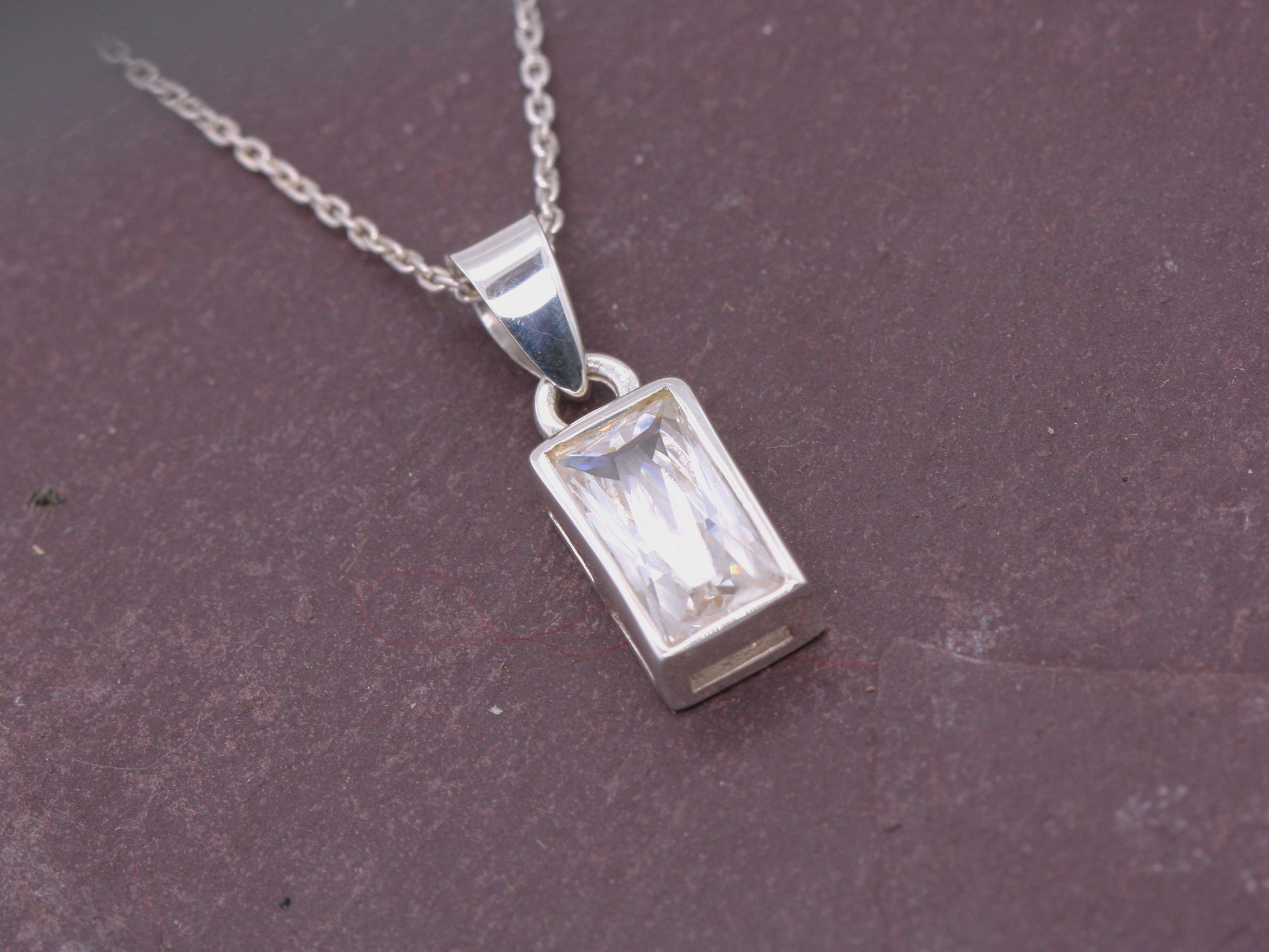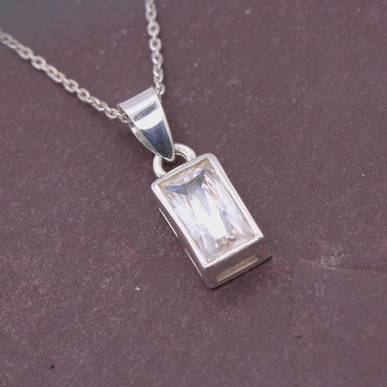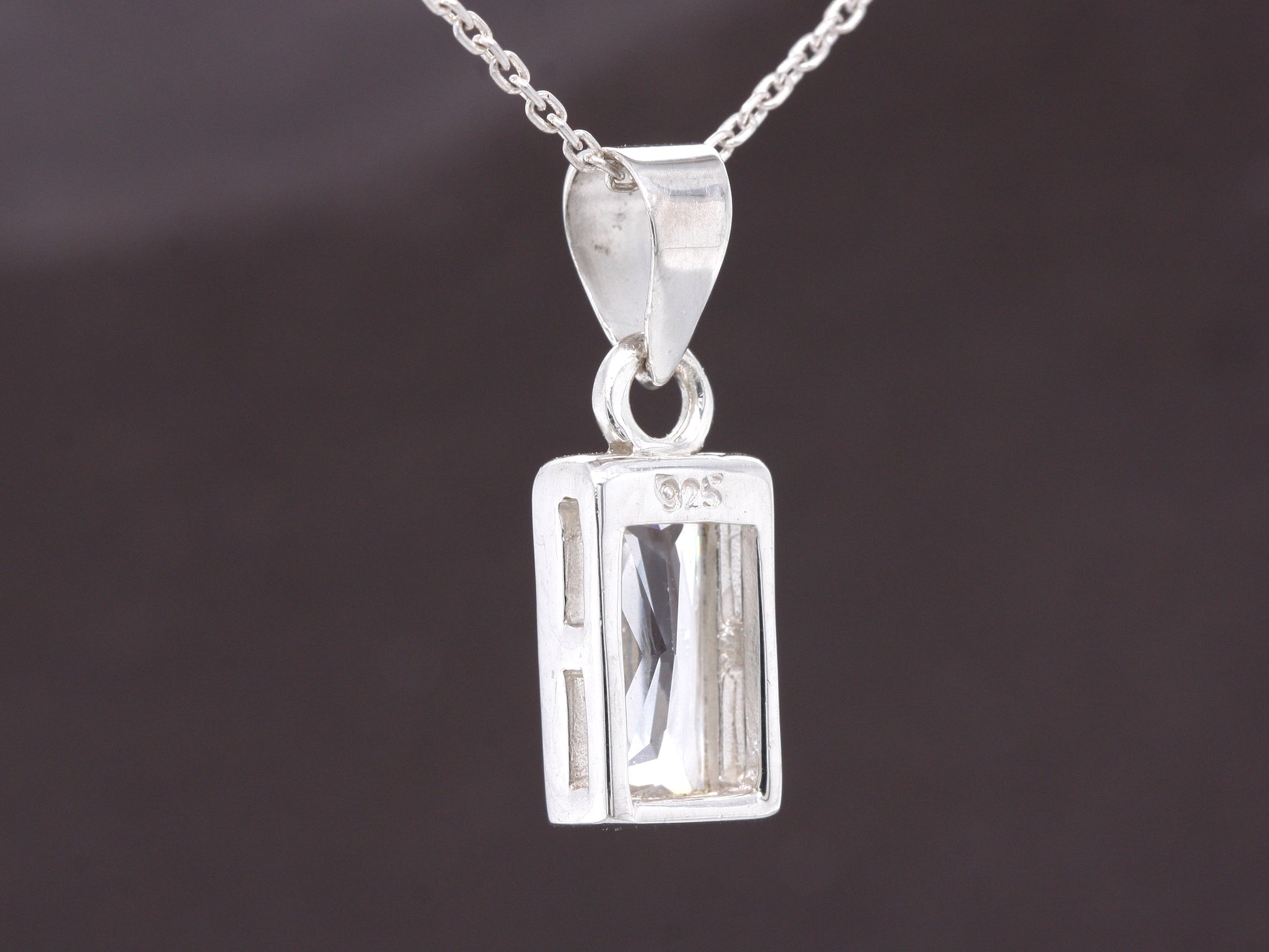 Sterling Silver Cubic Zirconia Emerald Cut Elegance Pendant with Optional Silver Necklace