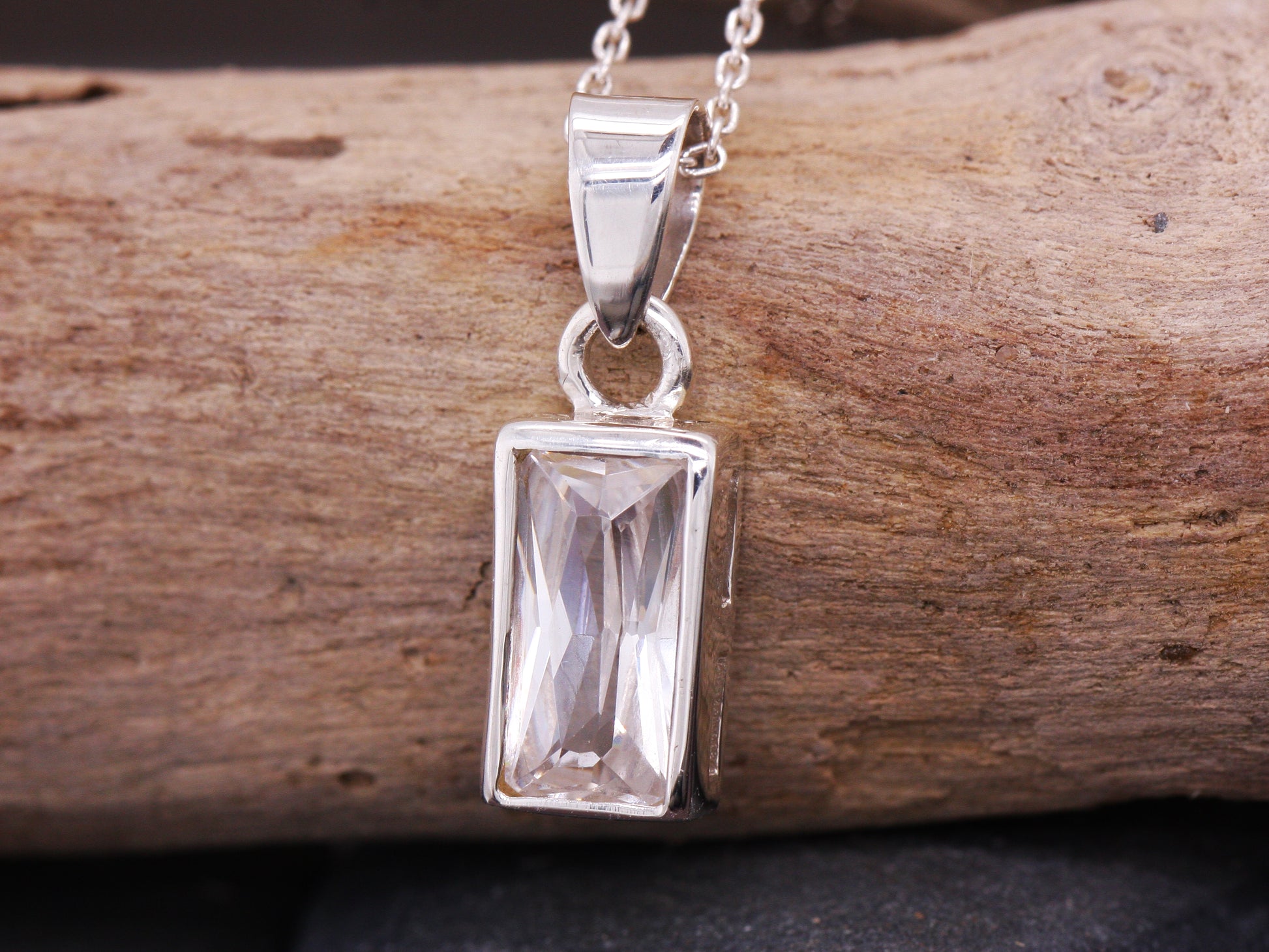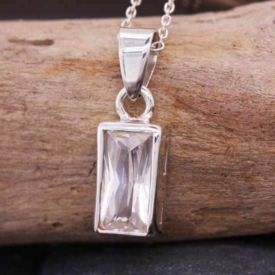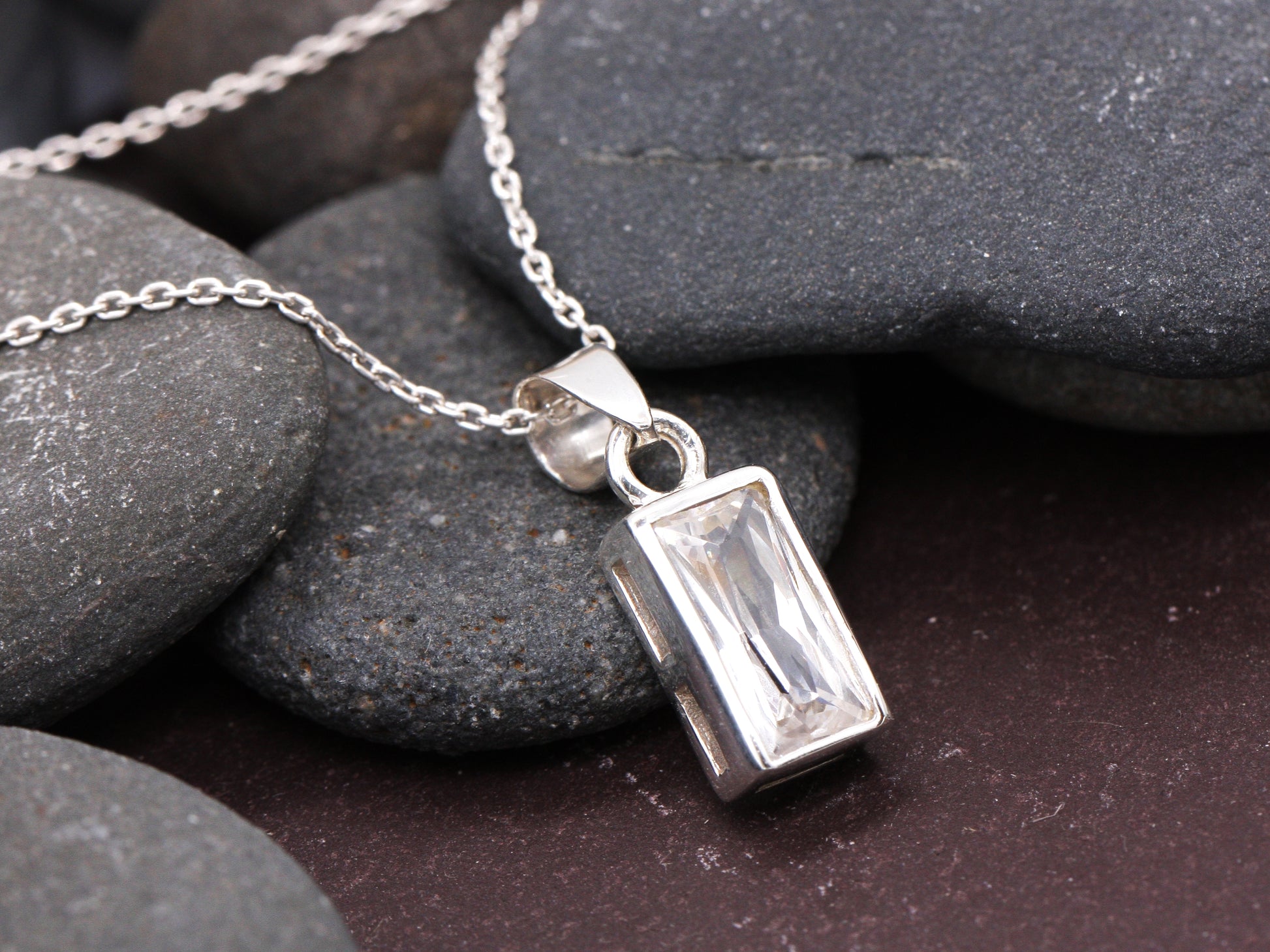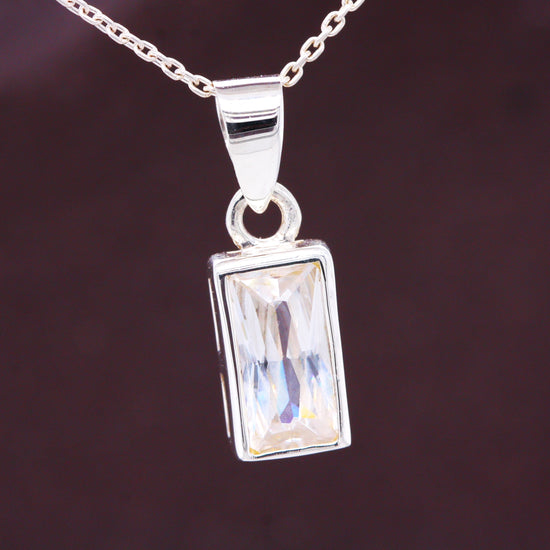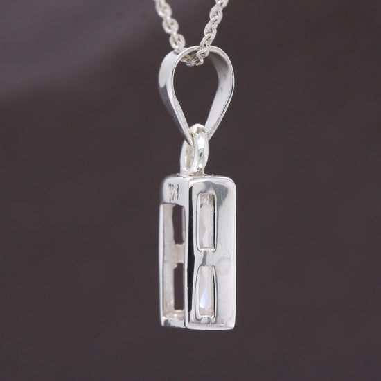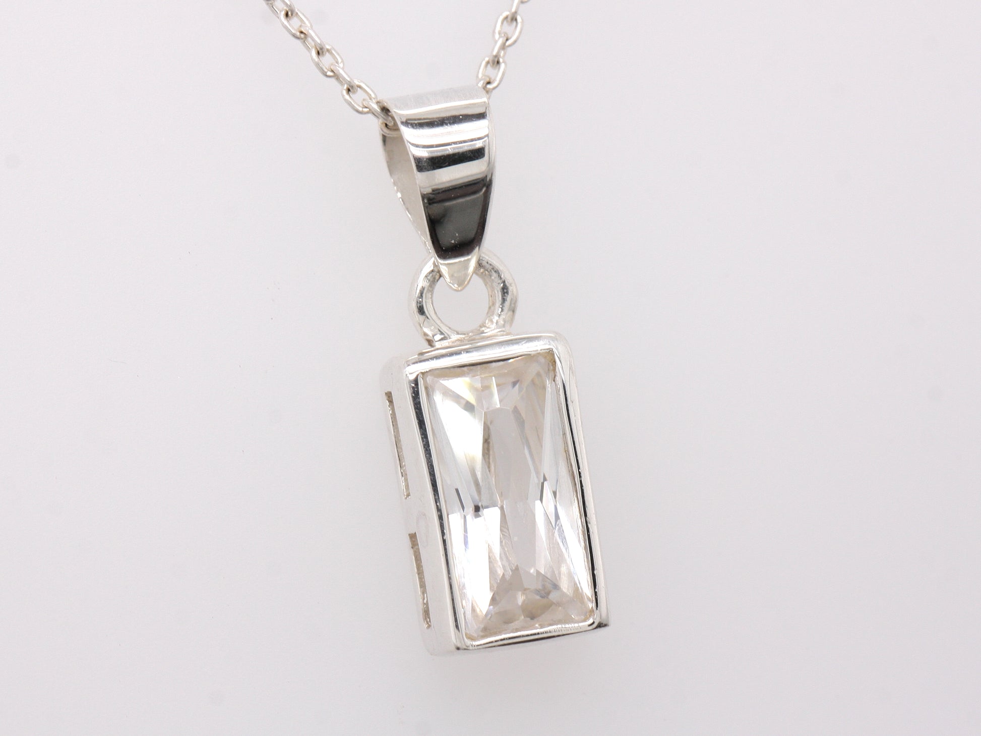 Sterling Silver Cubic Zirconia Emerald Cut Elegance Pendant with Optional Silver Necklace