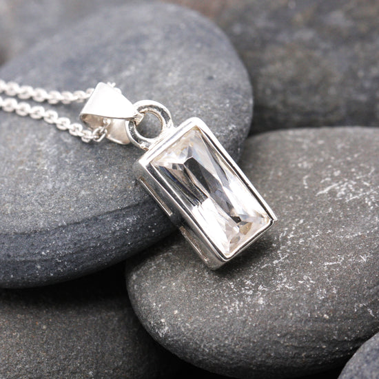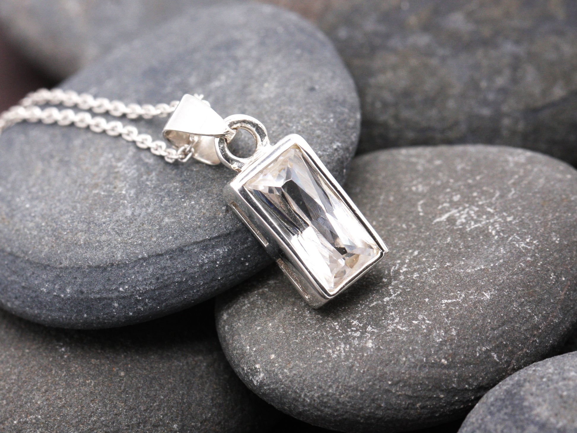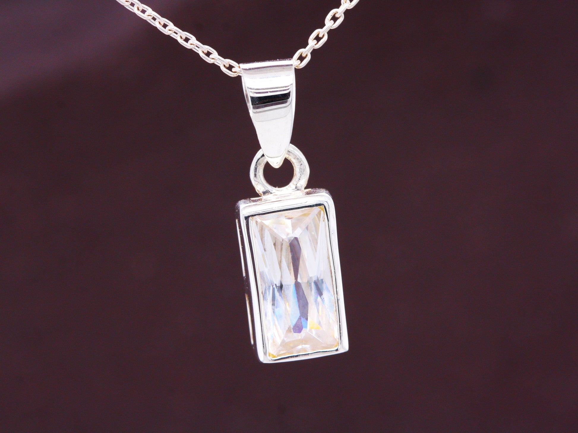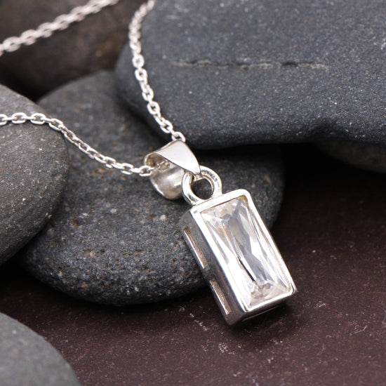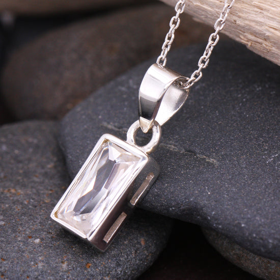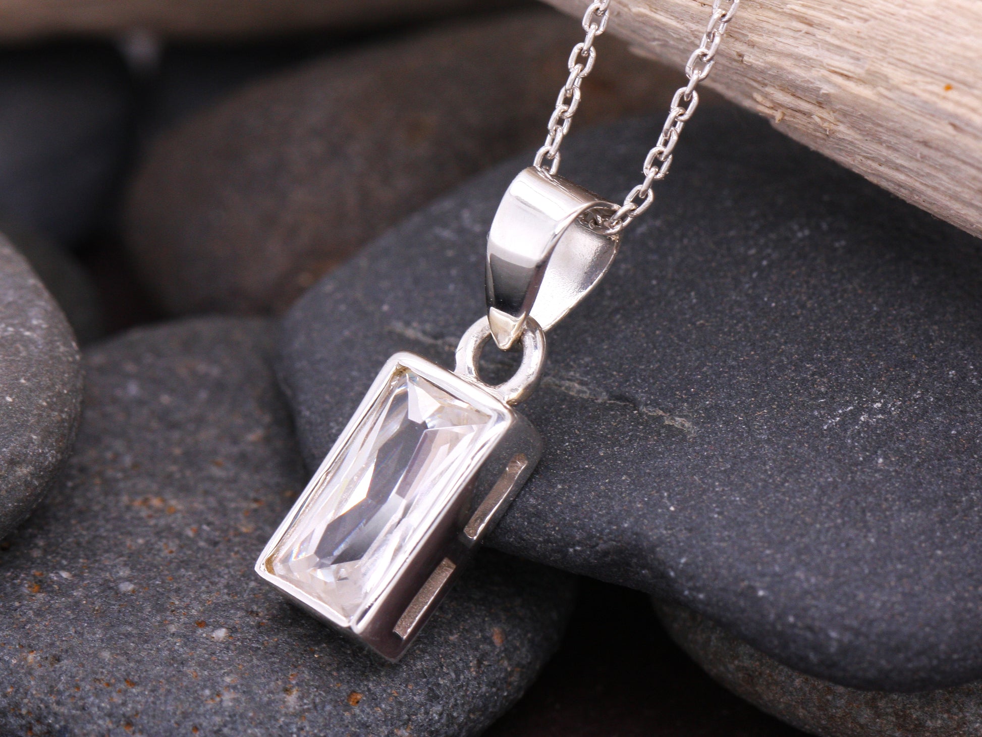 Sterling Silver Cubic Zirconia Emerald Cut Elegance Pendant with Optional Silver Necklace