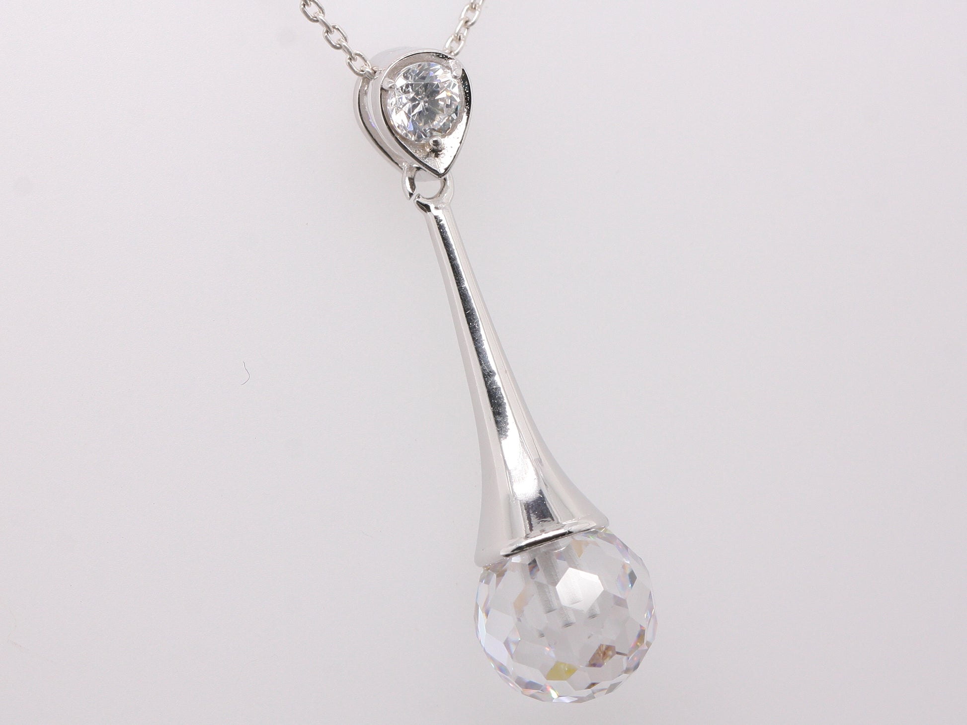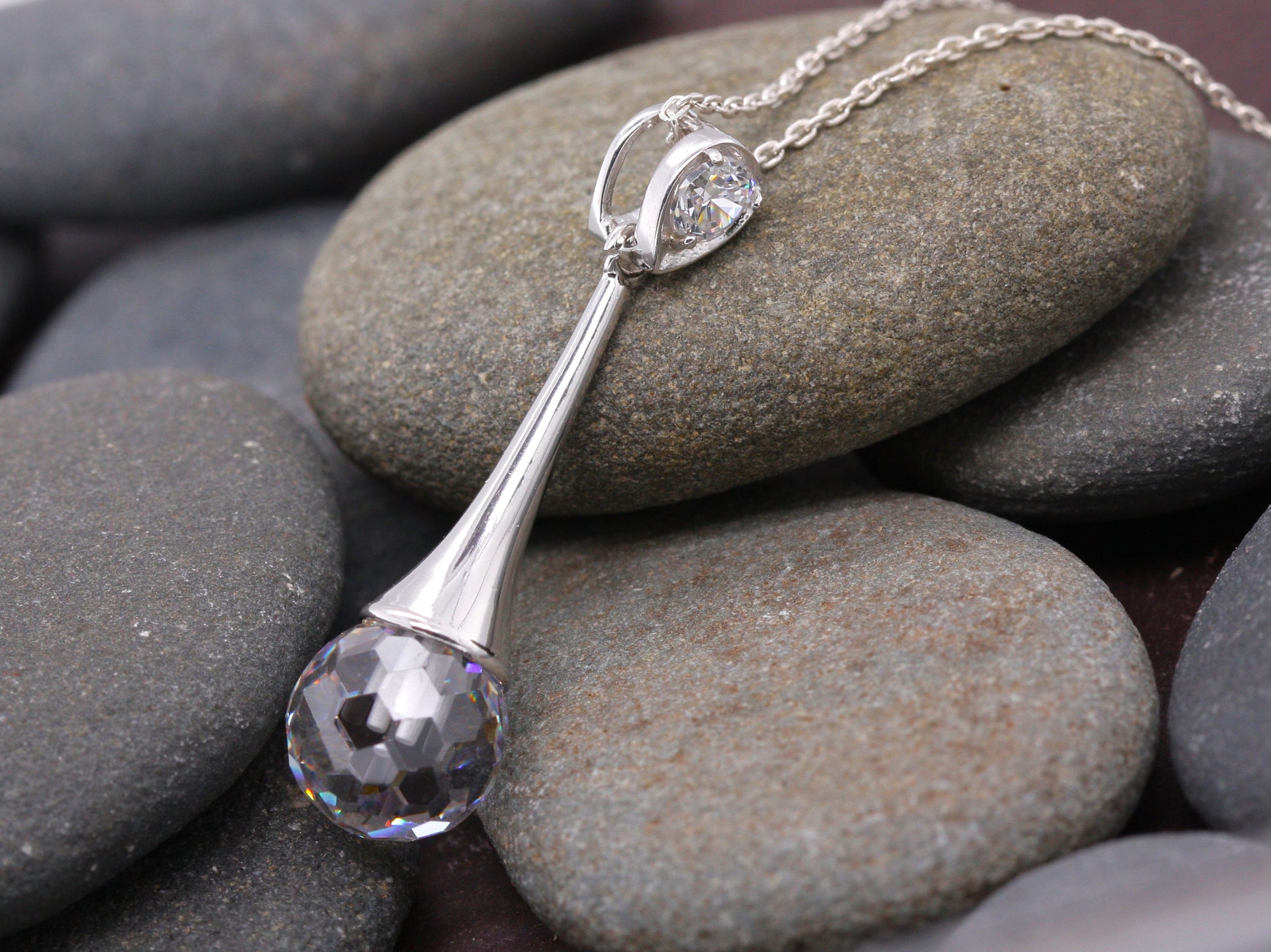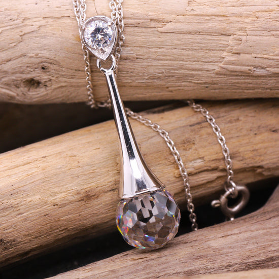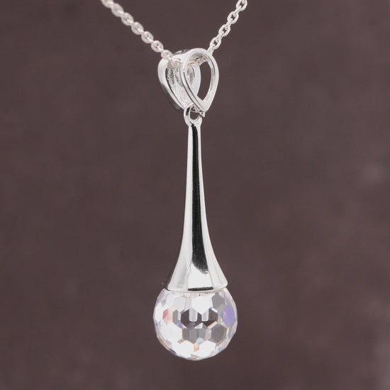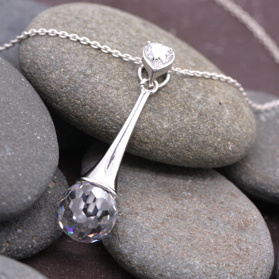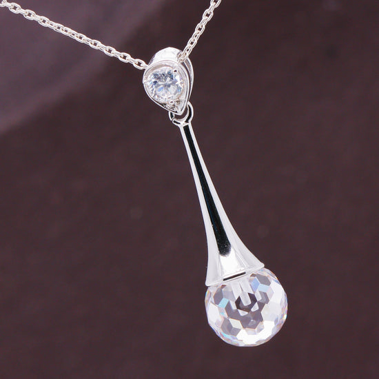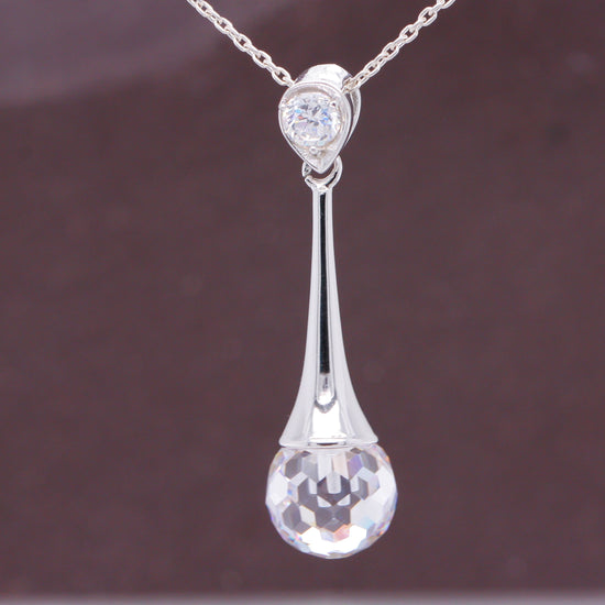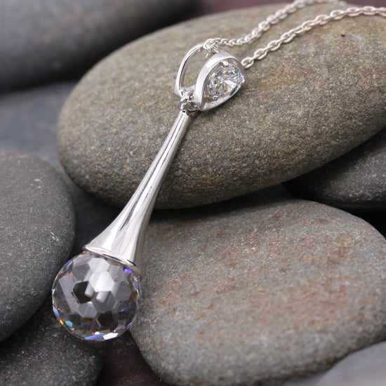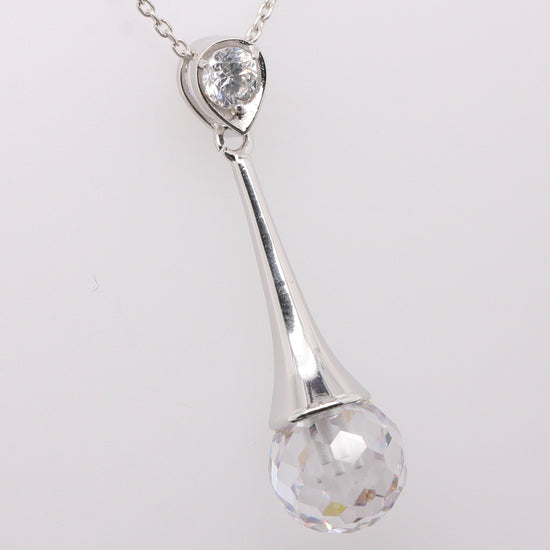 Sterling Silver Cubic Zirconia Disco Ball Cut Elegance Pendant with Optional Silver Necklace