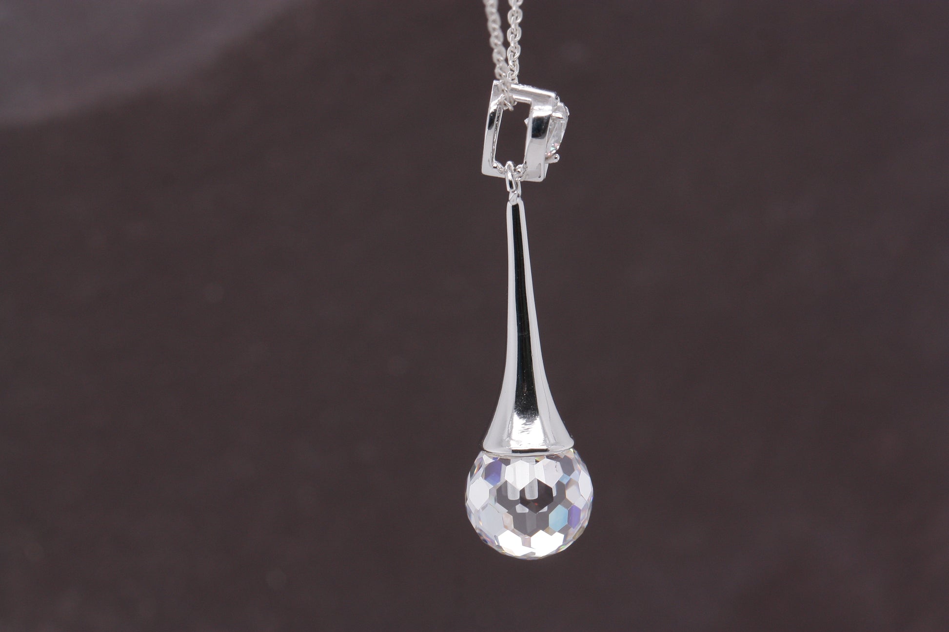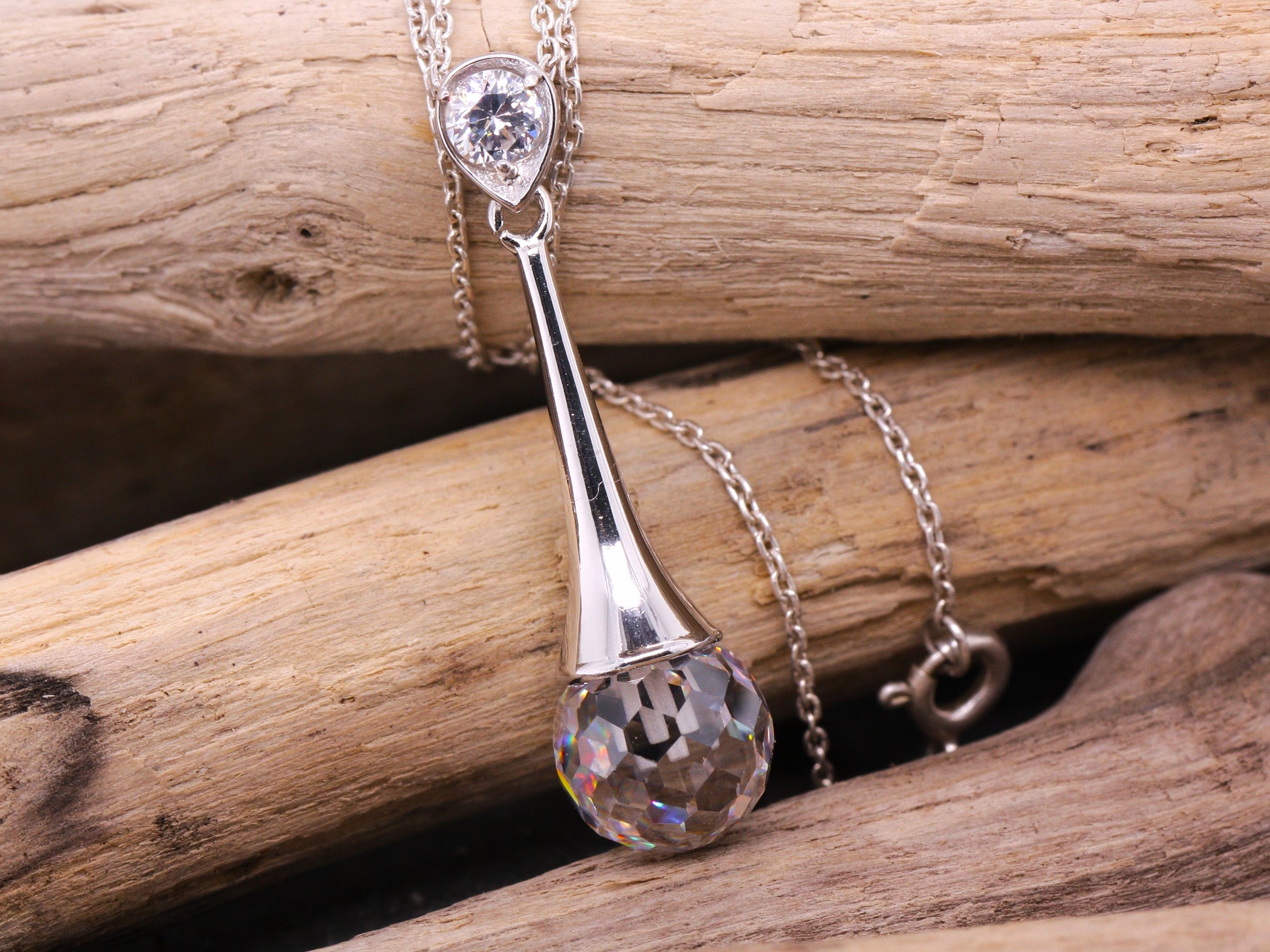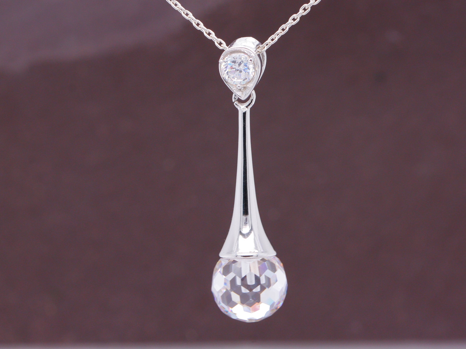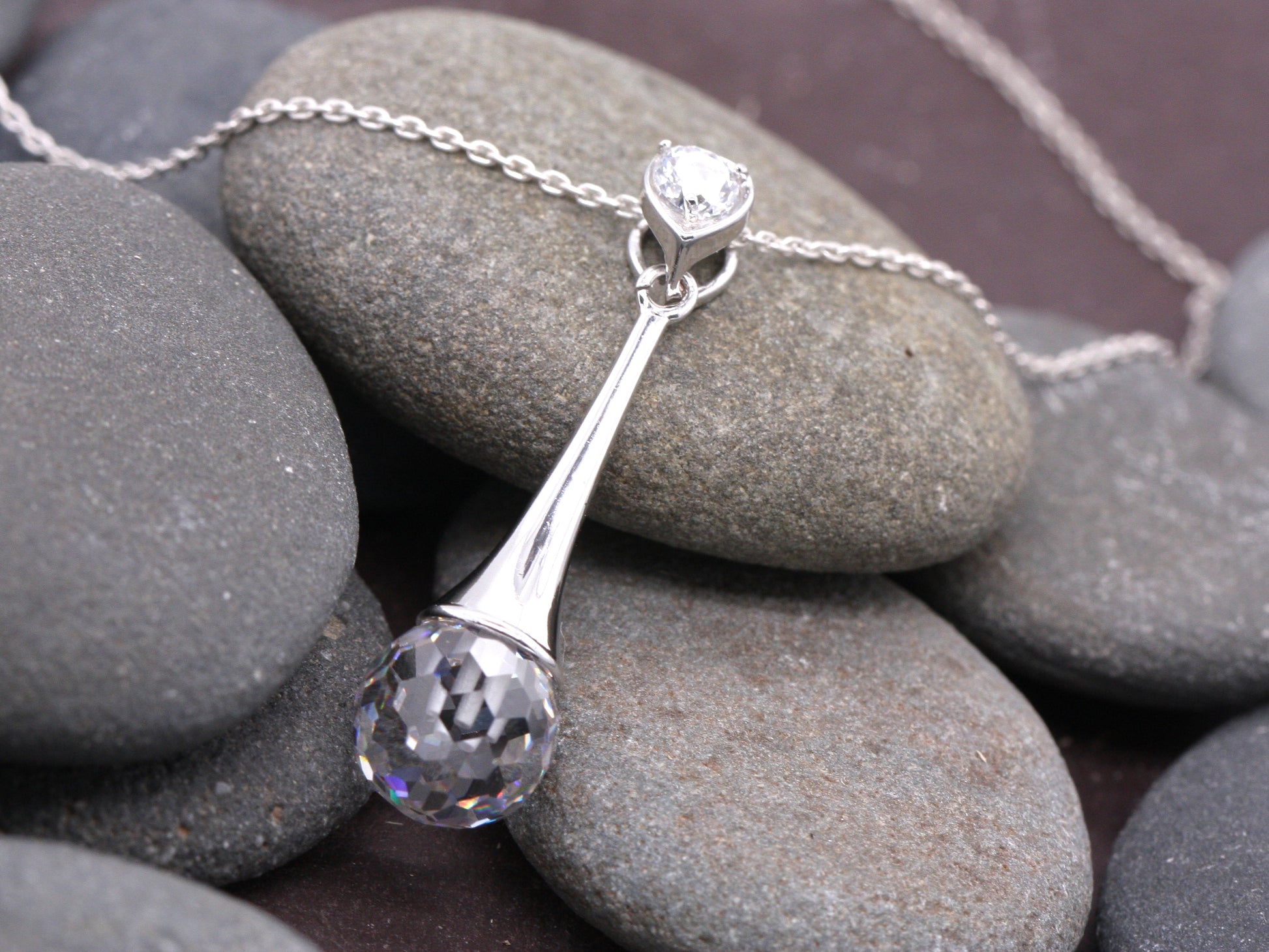 Sterling Silver Cubic Zirconia Disco Ball Cut Elegance Pendant with Optional Silver Necklace