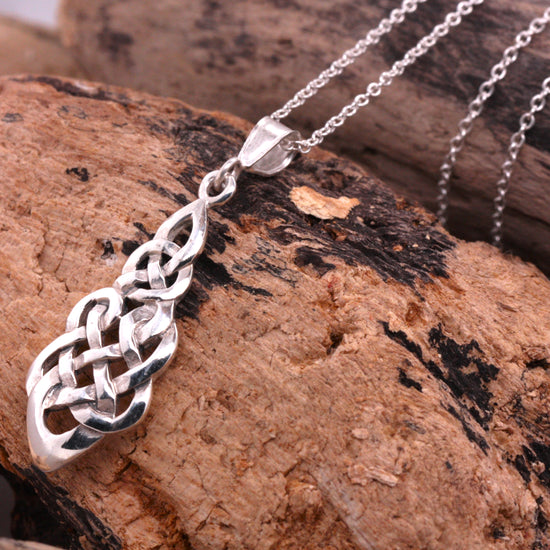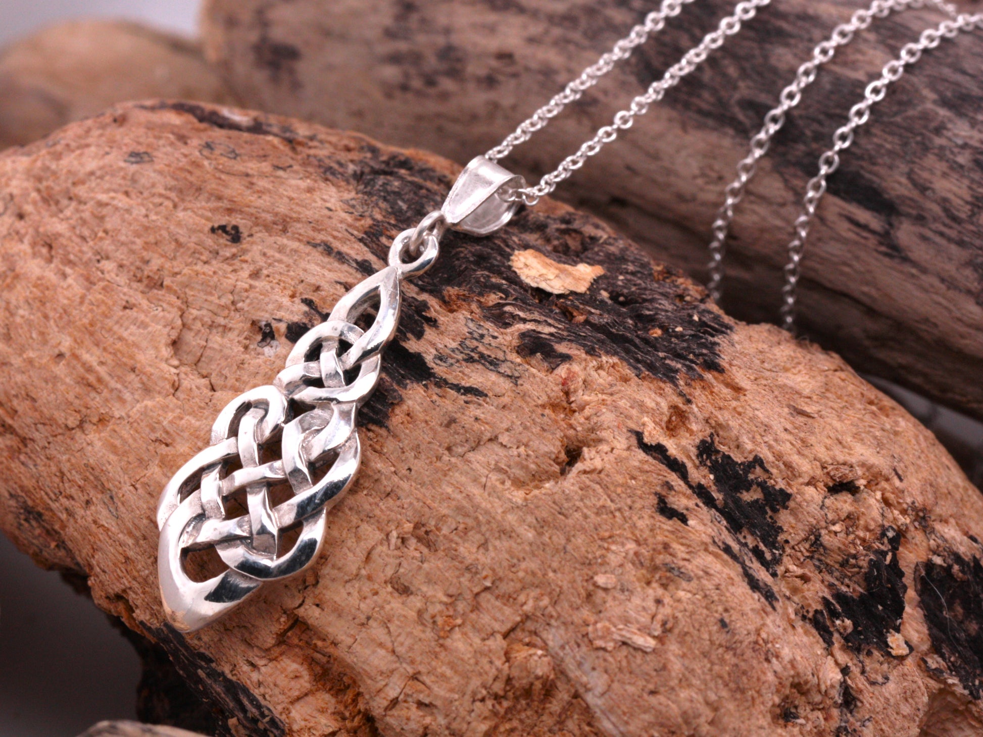 Sterling Silver Celtic Style Twist Pear Teardrop Raindrop Pendant & Necklace 925