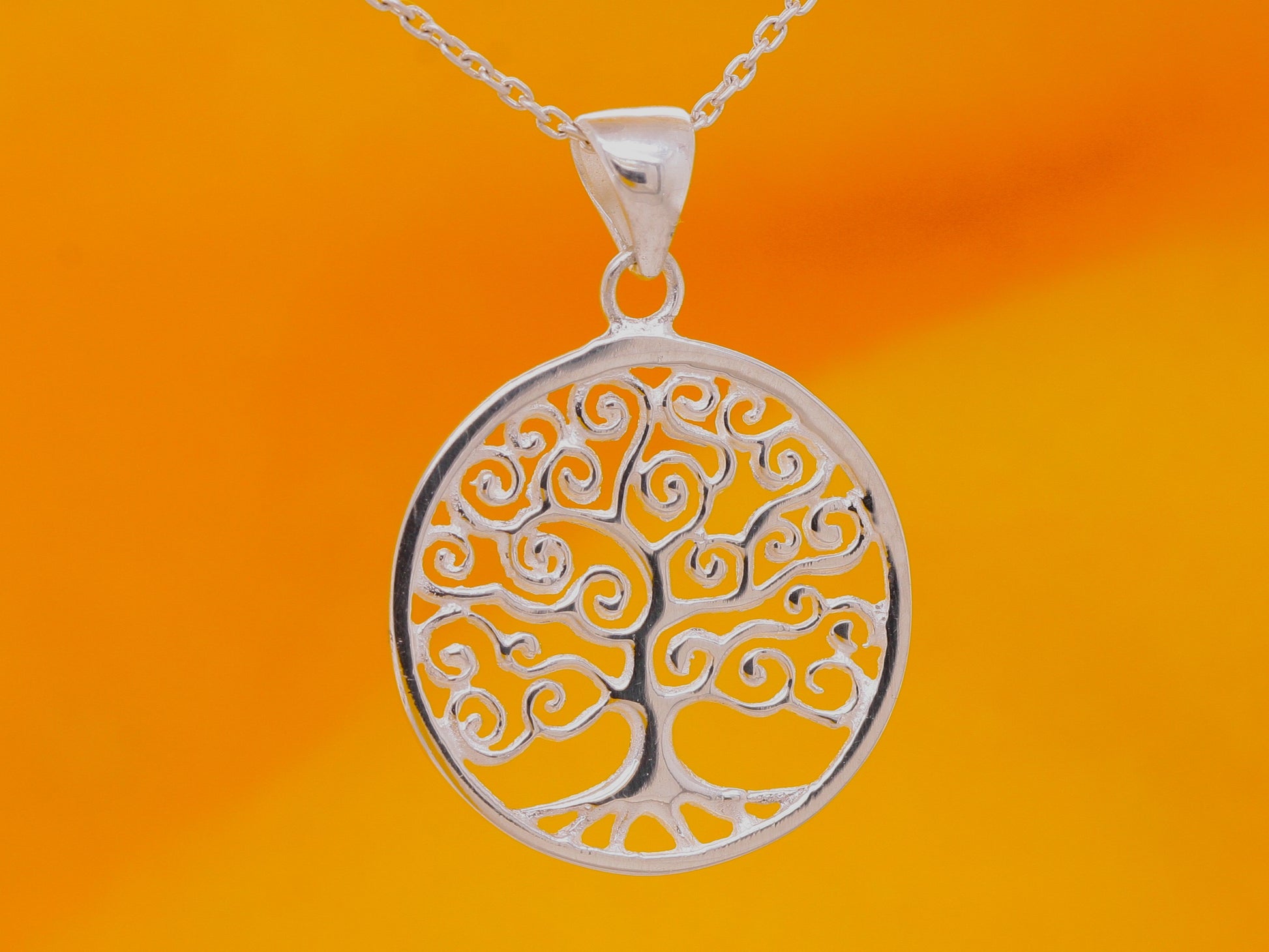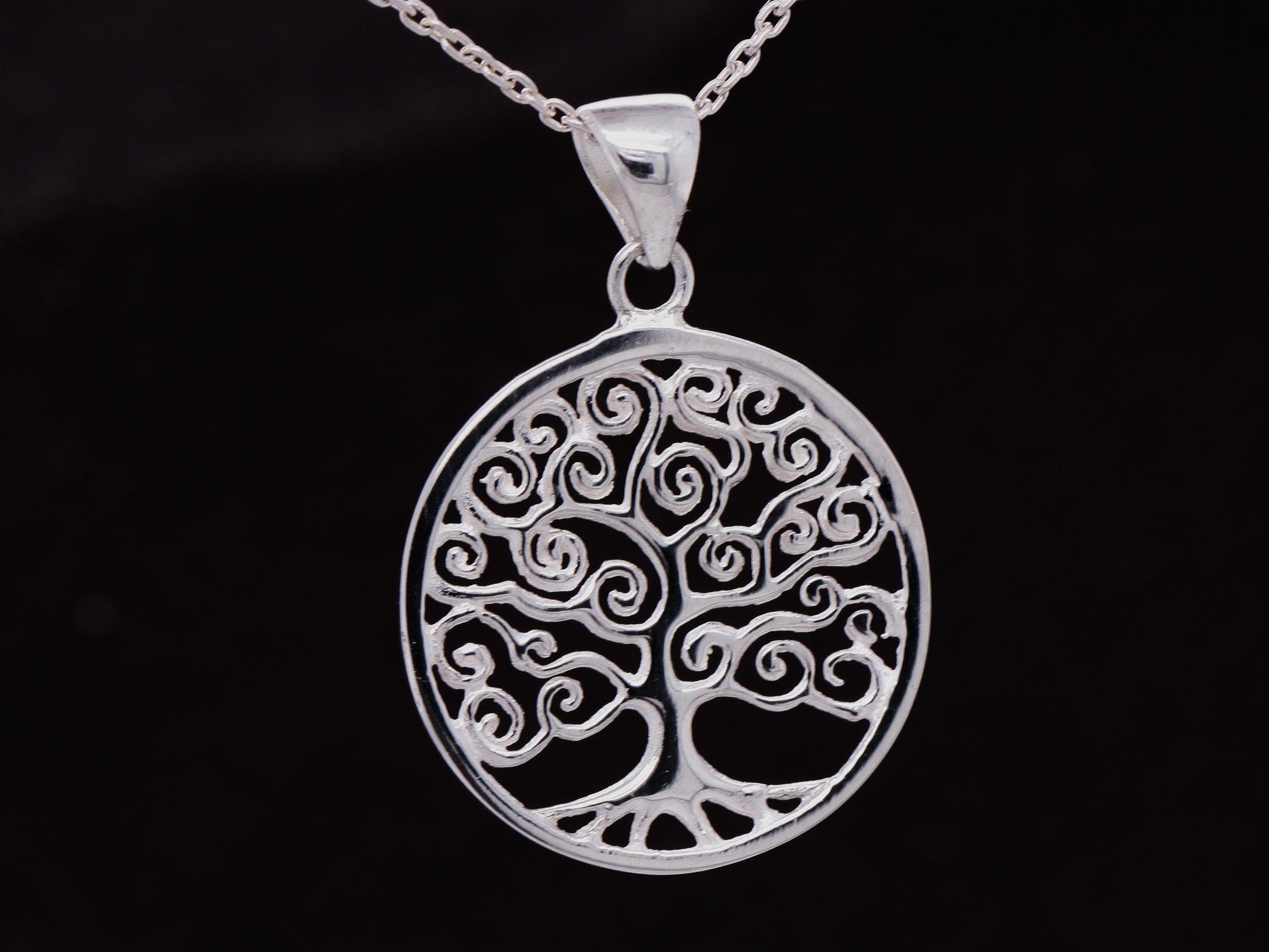 This intricate, cut-out 'Tree of Life' pendant features a contemporary version of the popular 'Tree of Life' motif.