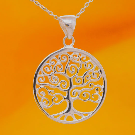 Sterling Silver Tree Of Life Nature Pendant & Sterling Silver Trace Necklace - SP9